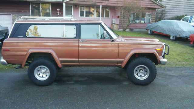 | 1983 AMC Jeep Cherokee Wide trackPower steering. power brakes. manual windowsBody has 158K on itAMC 360 freshened up. new oil pump. roller chain . new gaskets. erformer manifold - Holley 625 4VT 176 4 speed - 208 transfer caseGets 8 to 10 mpgInterior in good shape. original seats in nice shape. New front carpet and shift bootNo Rust found anywhere paint buffed out real nice - couple scrapes and small dentsNeeds a head liner - has some wear to rear carpetAC needs rechargeHeated glass does not defrost. NEWFront and rear brakesNew custom balanced drive shafts front and rear from DLNWManifold back 2. 5" full dual flow master exhaust with X pipe4" Rusty's lift. new shocks. front springs. rear springs rebuilt with 1. 50" blocks. New Clutch . pressure plate. throw out bearing. Everything cleaned and paintedThe truck was converted to a 4 speed. done right with all parts from 1983 J 10 Honcho pick up. COOPER 33x12. 50x15 tires on polished Aluminum wheels1983 was the last year of production on these 2 door full size Jeeps It drives and runs great. no hurry to sell. this is a good example of an unmolested truck. Most trucks of this vintage are wheeled trashed and rusted out. Getting harder to find nice clean examples like this. On Apr-18-15 at 11:08:23 PDT. seller added the following information:Update 4-18 Rear back glass works good. All Windows tinted Windshield crack free. has 2 chips Tires 60% on front 40% on rear tread Hope this answers all the questions asked |