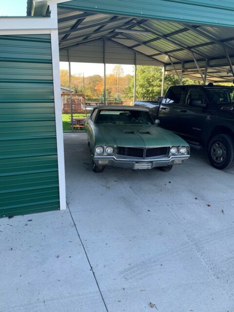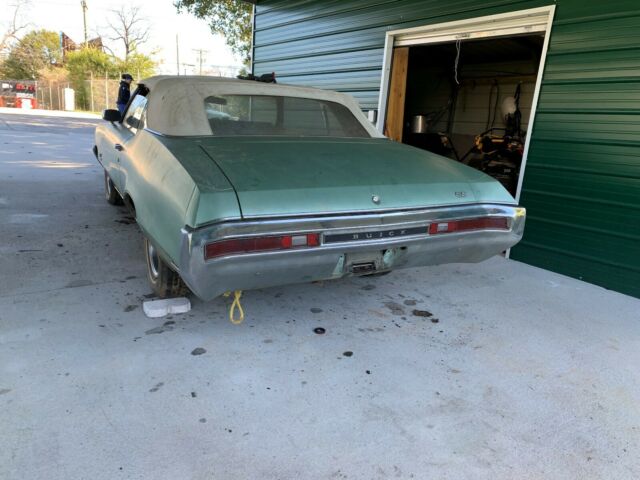 1970 Buick GS 455 CONVERTIBLE. 1975 BUICK 445 MOTOR, don't no about tranny but it is a 400 turbo. Power windows, tilt wheel, gauge pack with ralley clock, speed alert, none tac, Bucket seat console, AC, rim blower steering, super sport wheels very rar, rear window defroster, power steering, power brakes. Clear title with Sloan DOC, Factory color Seamist green HH-I trim 185 Vin 44667H0. car do not run needs to be hauled, Seats an top is pearl white with no tears or rips like new, front driver floor needs repai, an some of the lower panels over all a nice car 336 608 8400