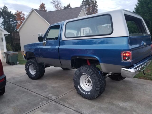 Up for sale is my 1983 Chevy K5 Blazer. This is a frame off restoration, right now 95% done. Numerous Upgrades, include: 383 Stroker Motor 700R rebuilt bullet proof transmission...custom painted with a deep pan Center line wheels with 36' TSL Thornbirds Dana 60 front & rear Ranchero suspension lift Brand New Pioneer CD/DVD touchscreen stereo system w/ MTX 12' Subs & Amp. Shaved door handles w/remote pop opener Ice cold AC Edlebrock Carb. & Valve Covers Hot Cam/Gear driven Custom Interior Custom Two-tone paint job Not in a hurry to sell this beauty but entertaining offers! All work was completed by TU Customs right here in Mooresville. Definitely a must see to appreciate! No joy rides serious buyers only! Don't need help selling. Possible trades are a REALLY nice camper or classic cars. If interested please call 704-963-5525. |