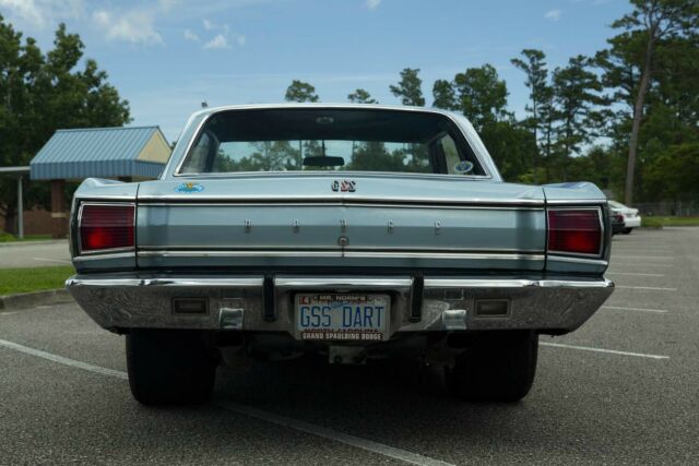 GSS History This was the first small "compact car" with the big motor (built by Dodge in 1967) - An actual, original GSS Dart is an incredible find and is so rare, that most Mopar enthusiasts have never seen one - These first GTS cars in 1967 are even more rare and most books do not even list the GTS until 1968 - They are more rare than Hemi 'Cudas and Charger Daytona's - It was the legendary Mr. Norm who first put the big block High Performance 383 HP motor into the narrow engine bay of the lighter and better handling A-Body Darts, with upgrades to the frame and suspension- When the 383 HP motors, with nearly 400 "Real" Horsepower and a massive 425 foot pounds of torque, were put into these lighter great handling Darts, they instantly became Americas hot new "compact" muscle car - One of the forces that most affected the muscle car era was the pressure regularly applied to the factories by their dealers, who did not hesitate to take customers' demands directly to corporate marketing management. Norm Kraus's Grand-Spaulding Dodge of Chicago was already the place to buy a Dodge when owner Norm Kraus cut a deal with Chrysler to build a run of the 1967 Darts equipped with the 383 big-block, beating Plymouth to the market as they had planned to use it exclusively in the Barracuda. When the issue of badging arose, Mr. Norm came up with an elegant and interesting two-part solution. First he substituted the "T" in the cars' "GTS" designation with another "Sâ€, signifying the GSS (Grand Spaulding Special) model. Mr. Norm called these first High Performance Darts Mr. Norms "GSS Darts", and they were sold exclusively at his Grand Spaulding Dodge dealership- Their domination on the street and strip received instant acclaim, and they flew out of his showroom - The bosses at Chrysler saw the demand and the excitement created by these cars, and quickly tooled up and built the first run of 229 High Performance big block four speed Darts in mid-1967, ahead of the scheduled introduction of the GTS model for 1968 -The Darts were a sales success, so for 1968 Kraus requested a special run of 50 Dodge Darts with the 440-cubic inch 375-horsepower Magnum engine (425 true horsepower). Since the Dart was already set up for the big block, installing the 440 was an easy proposition, and a run of 50 cars would also qualify them for NHRA Super Stock. Chrysler pulled fifty cars from the assembly line and sent them to Hurst-Campbell for conversion as they had done with the Hemi Darts. Each was serialized with an "M" code in the VIN, equipped with the 440 and an A727 TorqueFlite automatic transmission, and then shipped to Grand Spaulding. And while the "383" badges were no longer accurate, there was no version of a "440" marker that would fit intheir place, so they were left on all the cars. Misleading? Not in the legal sense, since the 440 GSS Dart was advertised as such. But out on the street, more than one victim was left in the dust of what he presumed to be a lesser car. Warranty