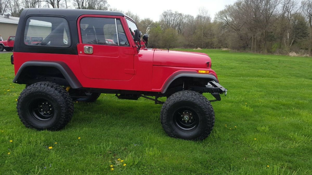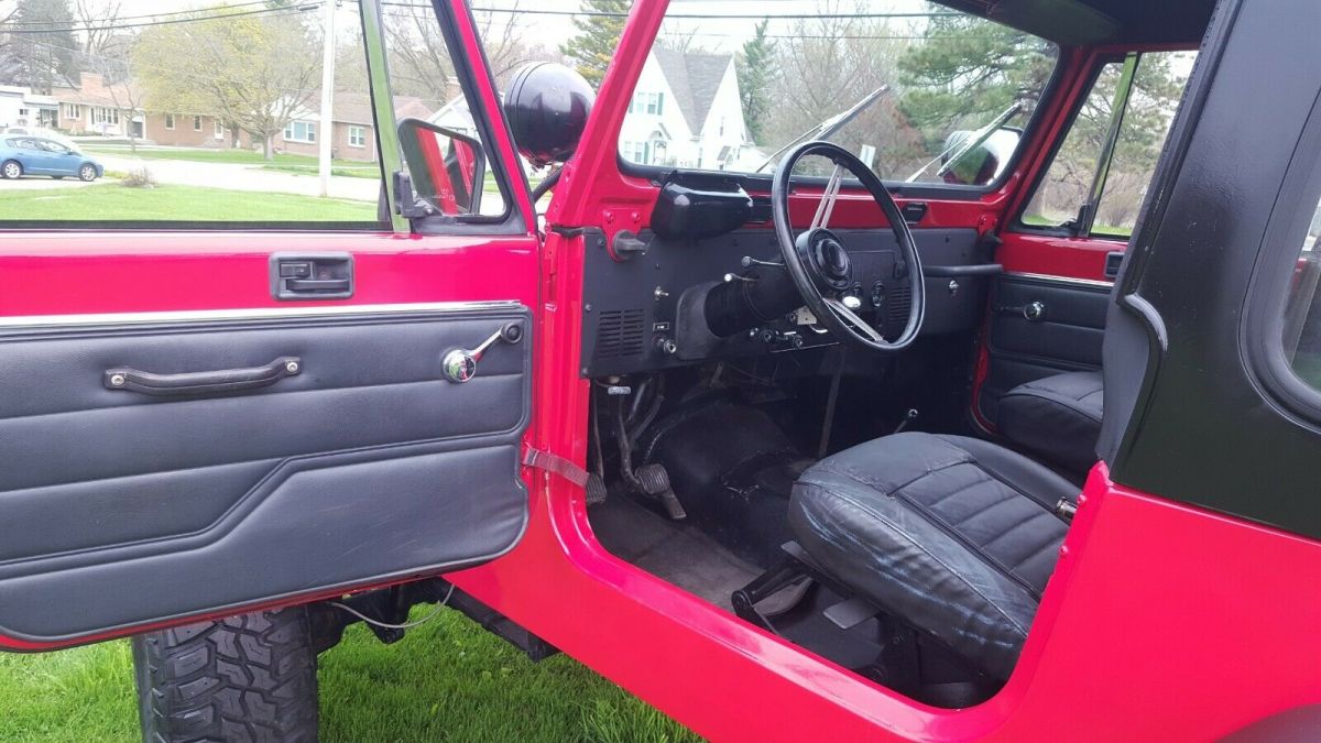 Jeep CJ-7 hard top 4x4 hard doors. Condition is Used. AS-IS. This jeep has had alot of work done to it. two year old paint job, new door seals, windshield seals, windshield, brand new 35in mud terrain tires and rim, new shackle conversion kit, new leaf springs, upgraded gm axles with upgraded high steer conversion, new gas tank skid plate and sending unit, does need a fuel gauge. warn winch front and rear bumpers with hitch receiver in the rear and d ring mounts on the front. The mileage seems to be only for the speedometer looks like the 4.2 inline six motor may have been replaced, newer clutch, lots of upgrades,nice jeep gets a lot of attention. Please call or text for more info 815-814-3700