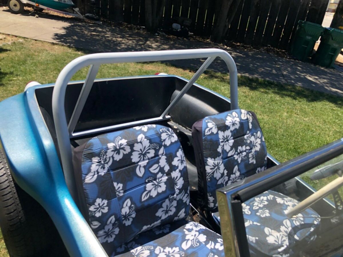 This buggy was parked in 1978. I bought this little gem from the original builder. It now has arebuilt 1600 dual port with less than 100 miles on it. Engine was built by Air cooled mobile in Chico 2 months ago with all new bearings, pistons, cylinders, rings, pushrod tubes, seals etc.... New dual Webber’s with hex bar linkage. I’ve put a ton of new parts on this buggy!! Strong running engine with .009 distributor and zoom tubes. Beautiful unmolested little buggy in its original blue metal flake paint. Original black plates. Front tires are new and the rears are used. Scat drag fast shifter. This little classic comes with a white fiberglass top that I bought separately. Ive never put the top on. So I’m not positive on the fitment. This is a true survivor with a ton of character!! Very solid pan.This little buggy has very few miles on it since rebuilding the car. Great little beach cruiser. Fun for the sand, dirt, or asphalt. Please ask any questions prior to bidding. I can arrange shipping at the buyers expense. Bidders are welcome to view and test drive the buggy prior to bidding. A non-refundable deposit of $500 is required within 24hrs of the close of the auction and balance within 7 days from the close of the auction. Feel free to message me for additional photos or information.New parts are as follows;Clutch kitThrow out bearingCarbsGeneratorStarterMaster cylinderPlugWiresDistributor CapWheel cylindersBrake shoesSoft linesHard linesFuel filterFuel linesIntake gasketsExhaust gasketsExhaust clampsSeat coversFront tiresThrottle cable