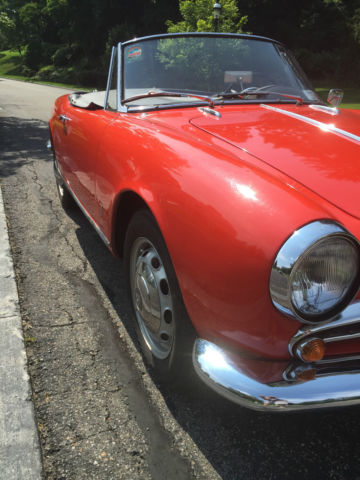 With the introduction in 1954 of the 1.3-litre Giulietta, lfa Romeo established the 'small car, ig performance' formula that would characterize its finest offerings from then on. The Giulietta's arrival caused a sensation; demand outstripped supply at first, ausing Alfa to rethink its production strategy and become, or the first time, high-volume manufacturer. The original Giulietta Sprint Coupé of 1954 was soon joined by Berlina and Spider versions, he latter sporting elegant coachwork designed and built by Pininfarina. In 750-Series form the Veloce versions of both Sprint and Spider came with an up-rated engine equipped with Weber carburettors and producing 90bhp (10 horsepower more than standard) making them the fastest of the mainstream production Giuliettas. This Giulietta Spider Veloce was owned by my brother in England from 1992 - 2006,it has a 5 speed box, n 2006 I bought it over to New York, nd have enjoyed many years of fun driving.This car has been well maintained, he head was rebuilt in 2010 atDominick European Car repair.