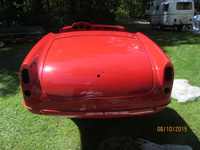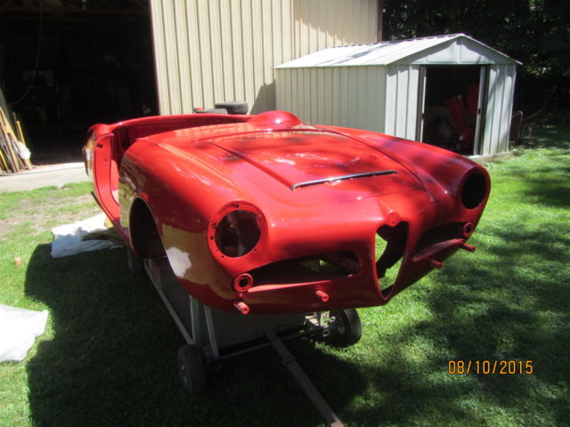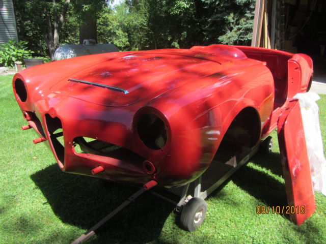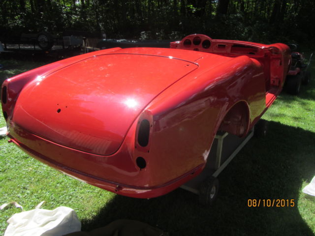 I bought this shell as a stripped body being prepared for SCCA racing, ntending to restore it to street use. I mounted it on a rotisserie, eplaced floors, runk floor, ad it media blasted inside and out. It was stripped by a shop familiar with classic and collector cars, sing plastic media, alnut shells, ome glass bead, ome silica, o achieve completely clean surfaces with no warpage or damage to delicate sheet metal. From bare metal, t was etched, rimed, nd painted with single-stage acrylic appropriate for the vintage of the car, n a version of red similar to Alfa Rosso. The undercarriage was coated in urethane coating, imilar to bedliner, inted to match the paint, o protect the underbody from chips, ust or other damage. I have owned the shell for about 20 years; it has been in wrapped, ry storage for over ten years following completion of bodywork. I have no mechanicals for the car at all, o trim, o other parts than the shell as you see it. I have dozens of photos of the restoration process, hich I will email upon serious request. Fusi history indicates the car was manufactured as a late 1962 Giulia Spider; S/N AR 101.23.372729 I have no title for the car; it will sell with a Bill of Sale. Contact me through eBay with any questions. I will help the buyer load on your transport; I might include the homemade trolley it is resting on. |