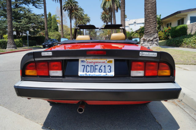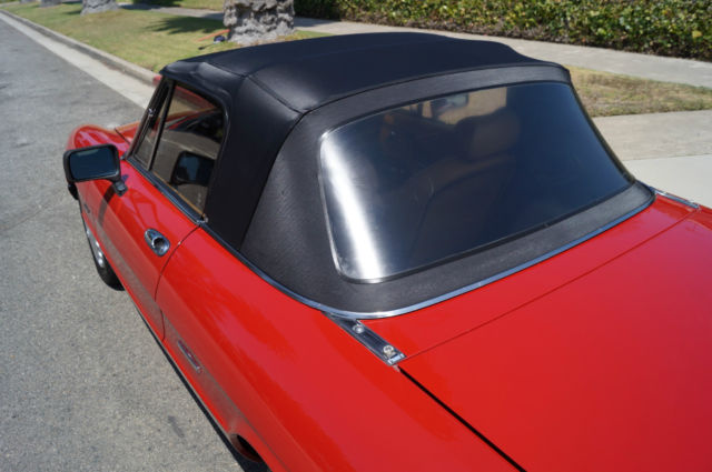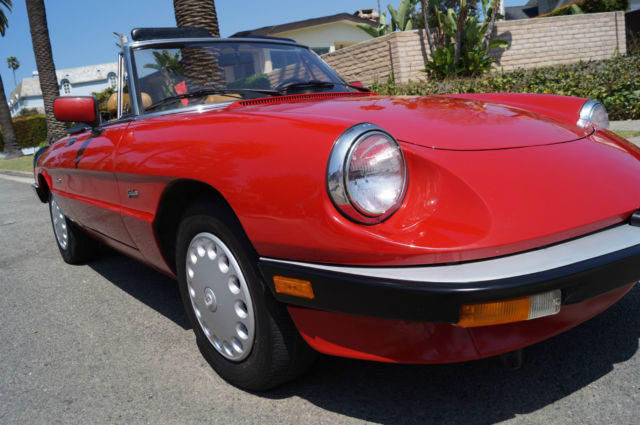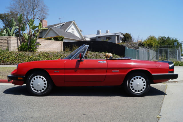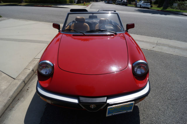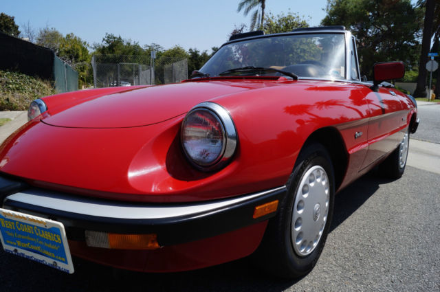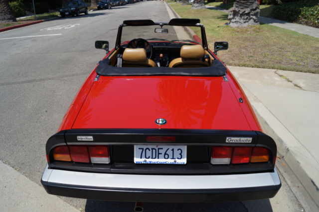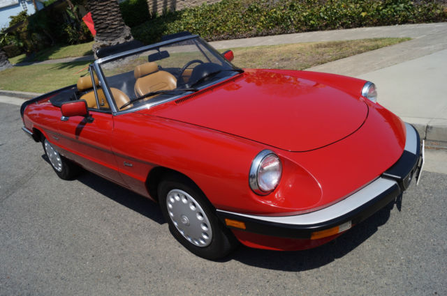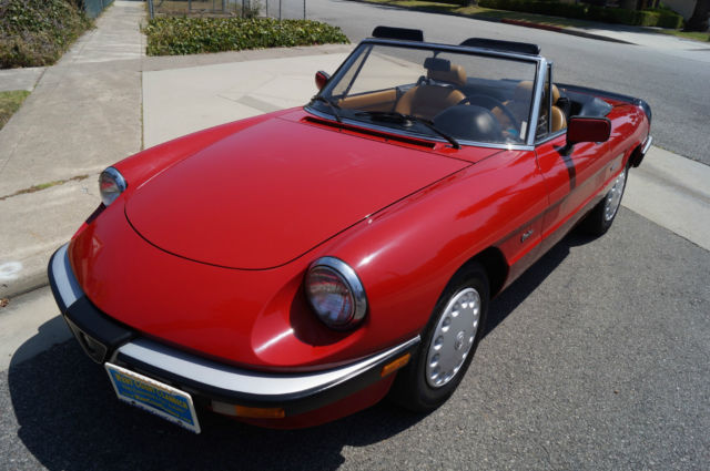 Please note that experience shows us that the photobucket of over 100 large pixel pictures posted here are in most cases best viewed and downloaded using the very latest and most updated version of the 'Firefox' browser as some other browsers and especially older browser versions are not capable of accommodating the size of the download. Over the years our clients have overwhelmingly been appreciative of our many unaltered large pixel photos posted in our ads and our feedback has been that it is very rare that a dealer will post all but the most flattering of professionally finished photographs. We prefer to post the many photos taken of the car, n sometimes unflattering but natural sunlight, n order for our prospective buyers to be able to see true and reliable images of the car advertised and that is the reason for some seemingly duplicated shots. We trust you will agree. West Coast Classics are proud to present an absolutely exceptional and stunning example of this 1988 Alfa Romeo Spider Graduate Fuel Injection 2.0L 4 Cylinder Convertible in the highly desirable color combination of Red exterior paint with a black soft top and tonneau cover and with a gorgeous tan leather interior and with only 24K original miles! The car has power brakes and working ice-cold air conditioning! Obviously always garaged with no rust and no signs of any accidents; this particular example must be seen to be believed and driven to be truly appreciated - obviously only driven by only very meticulous and mature drivers since new; this car has been babied all the way! The original factory 'Red' color paint is in absolutely exceptional condition and the tan leather seats are also in exceptional condition with the original interior in quite stunning condition throughout with no cracks in the dashboard or blemishes anywhere! The car has a clean CARFAX report which also confirms the car's original low mileage and the car will be sold with its original owner's manuals and service receipts. The Alfa Romeo Graduate, named in honor of the movie 'The Graduate' where an Alfa Romeo had a starring role, as become an iconic Italian sports car. The Alfa Romeo Spider (105/115 series) was a convertible roadster model produced by the Italian manufacturer Alfa Romeo from 1966 to 1993. The Spider nameplate originates from the English word 'Speeder', two-person open horse-carriage. Widely regarded as a design classic, t remained in production for almost three decades with only minor aesthetic and mechanical changes. The three first series were assembled by Pininfarina in Grugliasco and the fourth series in San Giorgio Canavese. The last Spider was produced in April 1993, t was also the last rear wheel drive Alfa Romeo produced before Alfa Romeo 8C Competizione was introduced. The series 3 spider came with a 2 liter DOHC engine with electronic Bosch fuel injection or twin Webber carburators as an option in Europe. Thanks to variable camshaft timing the engine is still lively, especially since the car weighs little over 2500 lbs. (1000 killos). On both country roads as well as highways, ower is more than enough to drive fast. The gearbox has long throws but is very percise, remember your input goes directly to your gearbox and not some elastic band linkage found in "modern" cars. 0-100kmh (0-60mph) is approximately 9 seconds and top speed (top closed) is a real 200kmh (120 mph). This obviously exceptionally well maintained and serviced example drives exactly like it should and you will surely look long and hard to find a finer example of this increasingly desirable and collectible garage kept and rust and accident free Alfa Romeo Spider with only 24K original miles in this very striking color combination anywhere else! For further information contact West Coast Classics through EBay or on 310-399-3990 during regular California business hours. WEST COAST CLASSICS, LC Please note: TERMS OF SALE: YOU BID TO OWN: This vehicle is being sold by West Coast Classics, LC; we are licensed and bonded vehicle dealers in the state of California. Please note that all vehicles sold to be registered in the state of California will be charged California sales tax on the final EBay sales price and any required DMV licensing, mog, ocumentation and registration fees. If leaving the state or country, he vehicle must be picked up by a professional licensed auto transportation company that can provide a bill of lading, therwise California sales tax will be charged. (All licensed auto transport companies provide these). Any out of the state and international buyers will upon completion of the sale be sent by FEDEX the title and bill of sale for the vehicle and will be personally responsible for any sales tax and licensing and registration fees in their home state or province. All bids are legal and binding contracts to purchase the vehicle and by bidding you are hereby entering into a legal and binding contract to purchase the vehicle and agreeing to accept and abide by these terms of sale: Mechanical inspections welcomed; if you wish to inspect the vehicle you must do so before bidding; upon request seller will be happy to deliver the vehicle to a local Santa Monica mechanic of your choice for your prepaid inspection before the reserve price is met. Once the reserve price is met this vehicle is to be considered sold in ‘as is, here is’ condition to the highest bidder with no guaranties or warranties implied or given. Please have all funds available before bidding as a $1,000 non-refundable deposit is required from the winning bidder within 48 hours (2 business days) of auction end; an immediate $500 non-refundable deposit is required through Ebay’s Paypal service to end the auction early if the "Buy it now" option is exercised and the balance in full is due within ten days of auction end in any case. In the case these terms of sale are not met seller reserves the right to either re-list the vehicle or offer the vehicle to the next highest bidder. 