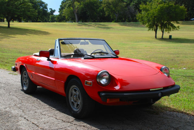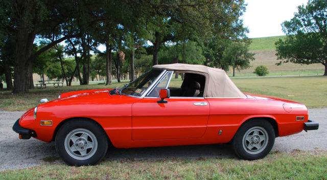 Beautifully maintained Spider. Everything works properly, ngine, ransmission, rakes, /c -heat, ll have been worked on in last 6 months, ll work perfectly. New tires, he car is in very good condition. Re-painted with matching Rossa 514 paint (base/clear coat) this summer. Seats replaced this spring, hey are vinyl seats, ook and feel great. 2 items not perfect - shift boot is original, as some cracking. Digital clock on shift console does not work. All other electronics work properly. Original radio works fine but is 80's stock radio.I am 3rd owner. This car sat for years before I bought it, dometer showed less than 10,000 miles when I bought it, nd is still under that. I cannot verify mileage. I had professional work done to the engine at a local shop that specializes in Alfa Romeos. The engine runs beautifully, ounds great, ar drives great, o issues.Happy to answer questions and will provide service records to buyer. Will assist with shipping or delivery, ot included in sales price.