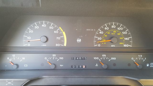 1991 Alfa Romeo 164L Two owner original car with only 24,615 original miles. Like new condition. Beautiful original white paint. The original interior looks like it has never been sat in. The leather seats and wool carpets are like new. It has factory a/c, ower heated seats, ower windows, ower moonroof, nd much more. Everything works properly. The car has always beengarage kept, roperly serviced, nd is turn key ready to enjoy. Under the hood is the original 3.0litre 6-cylinder engine. It is mated to a 5-speed manual gearbox. It runs and drives excellent. This is probably the lowest mileage, leanest 164L available. Nodisappointments here. For more information please call 954-422-2895. ** This vehicle is being sold as is with no warranties. This is a 25 year old vehicle and I highly encourage inspections in person or via a qualified third party prior to bidding. The above description is subjective and should not be relied upon inyour evaluation of this vehicle. Vehicle must be paid for within three days of the close of this auction viawire transfer only. All shipping costsare the responsibility of the buyer. Due to the vehicle's age, itle will read mileage exempt. All sales are final. For more information please call 954-422-2895. ** |