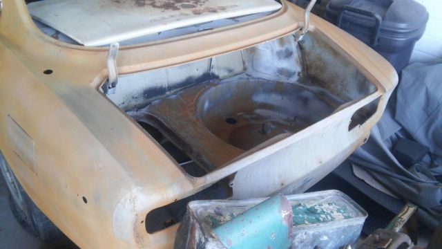 | 1972 Alfa Romeo 2000GTV #134 one built original color white. It ran before pulled apart. It's missing the fuel tank and center grill the rest is all there and needs restored has been media blasted but water got on it so it flash rusted. I took pictures of all the rust issues. This Alfa is very strait. This Alfa comes with a Arizona title and the body is in really good shape for restoration. All glass is good and the chrome and alloy trim is in good shape some dents but mostly good shape. The motor and transmission have not been dismantled. This car comes with a clean Arizona title and rolls and steers for shiping. |