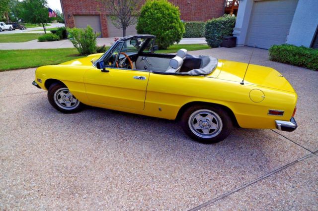 Two owners, meticulously maintained, no known issues. Same owner last 21 years. The 1750 Alpha Romeo Spider was the first car designed with the Kamm Tail, the squared off rear end design was a cleaner shape and gave the1750 higher speeds than the old round tail. This spider has a 5 speed transmission, Spica fuel injection, leather interior, four wheel disc brakes. The first owner of 25 years kept the car in Laguna Beach CA where it was maintained from new by APC ( Alpha Performance-Orange County,CA) Until the present owner purchased the car in 1996.The car was originally light metallic blue, the eccentric owner, known as "The whale lady of Laguna" had painted with a brush and white paint slogans to save the whales and dolphins. Within 3 days of purchase thecar was painted Ferrari Fly Yellow with 2.5 lbs of ground pearl added to the paint. Other upgrades are the wooden steering wheel, newer wheels a new black convertible top and chrome pieces. Mechanically the car is in excellent condition. The current mileage of 73,998 is correct. The car has been lovely cared for and only driven 7K miles in the last 18 years by the present car collector. In 2003 APC did a valve job on the engine adding hardened valves to run on unleaded premium only gas. In 2013 the rocker panels were rust proofed and repainted to prevent the usual rust problem of an Alpha, rusted rocker panels which can weaken the cars structure. The owner added Anza exhaust system for awesome sound and improved horsepower. The only apparent need at this time would be to thoroughly detail the engine compartment for show. No rust, no mechanical issues, new black convertible top, new tires and original white leather ( special ordered) interior. These cars are an investment that is increasing. Can't make any warranty on this Alpha, but come look, if it is not as described. Don't buy it. We are car guys looking for someone else to enjoy this Alpha. Shipping is your expense. We will work with your shipper within one week of purchase. I am listing the car for a fellow car collector and present owner. He is meticulous in every detail with his cars. He has owned this Alpha for over twenty years and it shows his loving attention to detail and maintenance. The Alpha is for sale locally and we reserve the right to cancel the ad at any time unless the reserve is met. Call if you are interested. Call for details, Kerry Orr, cell 404-312-9380and check the videos out on YouTubehttp://www.youtube.com/watch?v=QD_a35YFLsc |
