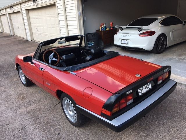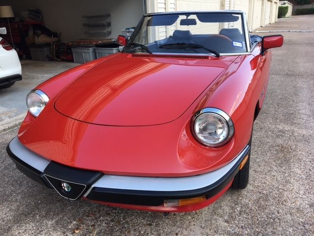 Classic Alfa Spider! 1988 Alfa Romeo Spider Graduate for sale. Alfa Rosso paint over black interior. Very well-maintained with just 42,xxx miles. Clean Carfax report and no sign of prior collision damage. Paint is all original except for small area refinished on one of the rear fenders. I've owned the car for several years and need to sell it due to lack of indoor storage, and it's too nice a car to leave outside. I've done a lot to the car over the past few years, including: * New fabric convertible top * Replaced front suspension control arms * Fully Serviced engine and changed all fluids * Installed Alfa GTA replica 15" wheels with new tires * Installed new Blaupunkt stereo with Bluetooth and streaming audio, and JBL speakers * New clutch master cylinder * New battery * New exhaust system Just picked it up from Alfa specialist last week where I spent $1,6xx on rebuilding the throttle linkage, some new hoses, new flex disc, new trunk and fuel door release cables and new trunk badge. The mileage is accurate and reflected both in the Carfax and overall condition of the car. It has a few rock chips and normal wear and tear, but is in very good overall condition for the age. I have the original owners manual/owners portfolio, and a full service manual for the car. These are wonderful, solid Italian sportscars that are appreciating in value. It never fails to get comments wherever it's driven (more than my Ferrari actually!) and it's not unusual for me to come out of the Italian restaurant I frequent and see people asking the valet's to take their picture in front of the car! There is simply nothing you can buy for this kind of money that has the history, style, reliability, and this much fun to drive than an Alfa Spider. These "Series 3" Spiders are probably the most reliable and sorted of the models, with Bosch fuel injection, galvanized bodywork that is much more resistant to corrosion, and a cheap and plentiful supply of replacement parts. This one is an outstanding example that is realistically priced and head and shoulders above the typical Spider one finds for sale. |