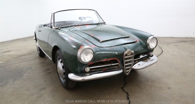 1963 Alfa Romeo Giulia Spider This very desirable project 1963 Alfa Romeo Giulia Spider shown here with matching numbers comes in green with black interior. It is equipped with a manual transmission, single Weber carburetor, solid wheels and with the soft top. An excellent original black plate California car that has been with the same owner since 1991 and is waiting to be restored. For $26,500 If you have any additional questions Please call 310-975-0272 or email with any questions! We also welcome all international buyers. We can help with shipping quotes and arrangements.