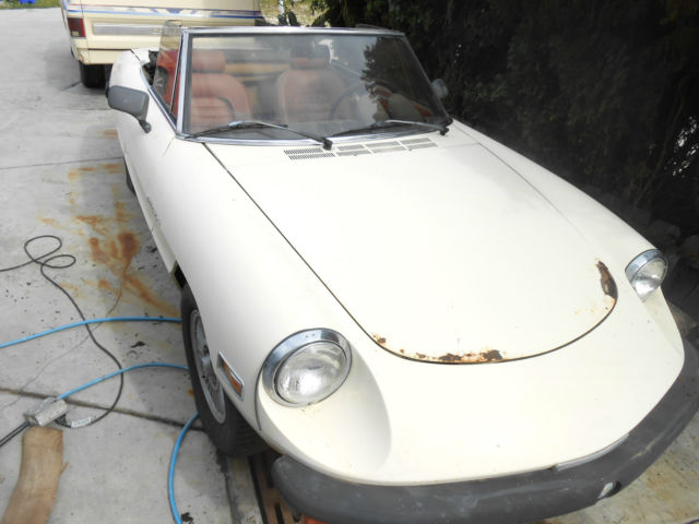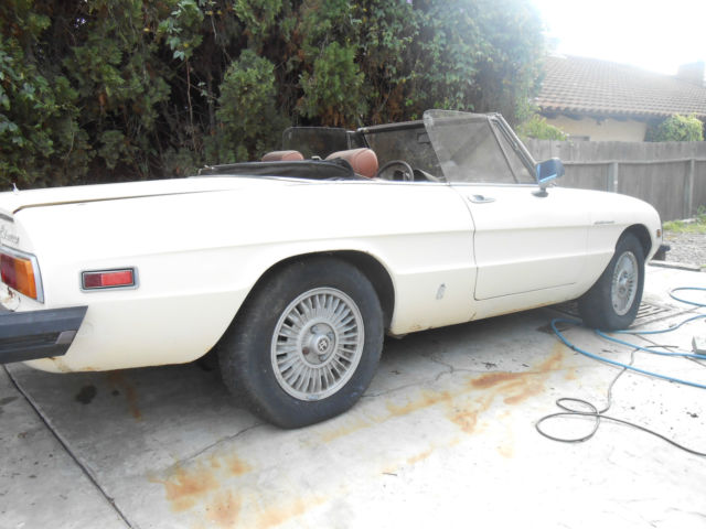 1981 Alfa Romeo Spyder. 2000cc engine. With AC. This car has 50. 25. miles. Has been setting for years. Lic and plates Non-op. wont start fuel lines leaking. Parts car or repair ?. Things that need that are known. Tires old. Rust on hood and trunk. starting to rust on sides. Fuel leaks. seats need re-done. Engine turns over fine. wont start Very old gas. lasr smog at 41. 30 miles on 6/12/1990. No rust detected on floor or under car. Needs top. nbsp;Clear Title. any questions call Michael 760- 529-7744