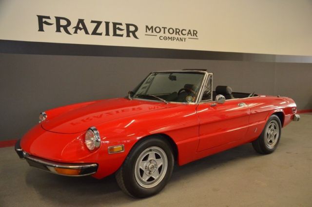 STUNNING ROCK SOLID ALFA SPIDER in CLASSIC RED Review these pictures of this fabulously well preserved Alfa Spider.The car is stunning. The body panels are razor straight and void of rust or accident history. The interior is also superb with fresh looking door cards,soft,full,supple leather seats. The dash is void of heat and weather damage with no cracks as well as not warped The top is like new The carpets are as new The glass is as new void of scratches and damage The gauges are fresh and crisp and work as designed The transmission is good with all synchros working including the infamous 2nd gear synchro. The tires are deep in tread Wheels are void of curb damage The car comes out of an extensive collection and has been celebrity owned. The condition reflects that of a car that has been owned by conscientious owners. Review the pictures posted on the slideshow presentation.If the car holds interest contact me at 615-971-4409 or email jeff@jpfrazier.com The car is located at our indoor facility 25 miles east of downtown Nashville Tn.Independent inspections are welcomed and encouraged The $299 dealer doc fee is inclusive at full price transaction This and other European collectibles may be reviewed at JPFRAZIER.com Dealer's Information - 201 Pryor Creek Road Suites 1-3,