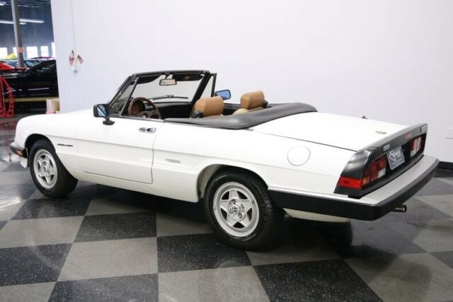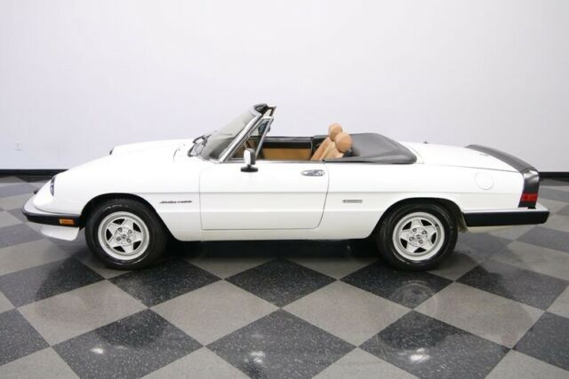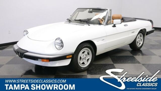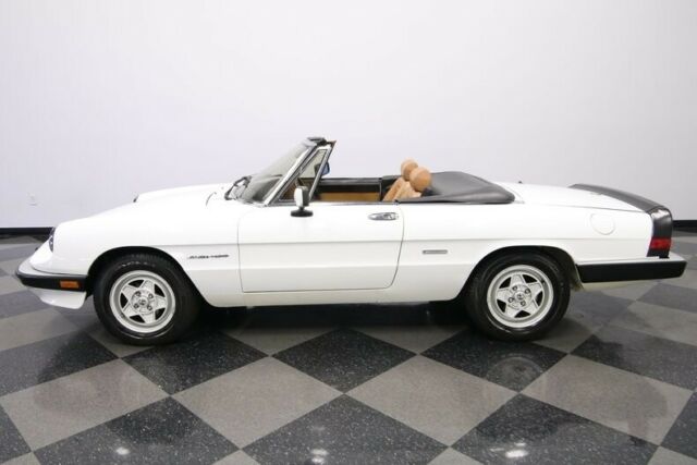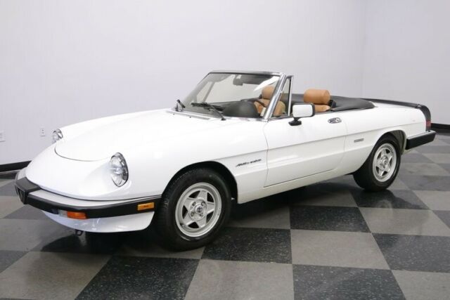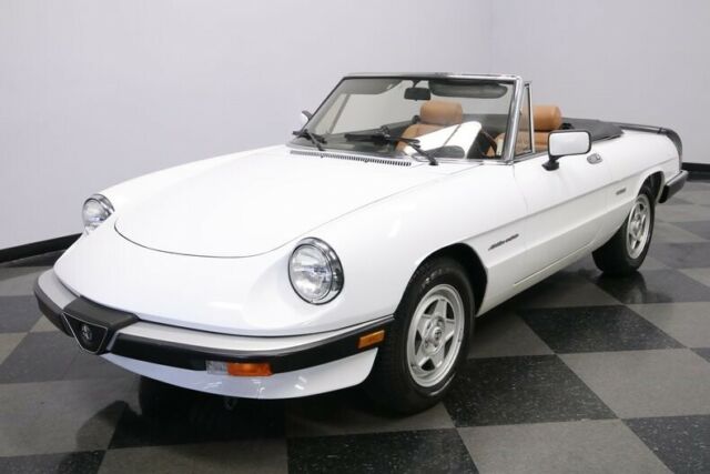 This 1990 Alfa Romeo Spider Veloce has supple Italian leather, cold A/C, and a sporty feeling that has made it one of the most iconic droptops ever. But what makes it irresistible is that ultra-low mileage machine is available right now for such an affordable price. We don't have to bother making references to The Graduate. After all, that legendary movie brought our attention to the now-iconic slope-nosed beauty of the Alfa Spider. But this one is a different kind of classic. For starters, factory-correct white appears original, and it has the right gloss and shine to give this vintage machine the appeal of a modern iPhone. The black folding roof looks nice, and the wraparound rubber trim (front and rear) and rear spoiler coordinate with it to create an almost two-tone appearance. And as you look over the details, like the crisp body panels, clear glass, and clean factory 15-inch alloys proves that this one has spent its life being cared for correctly. In fact, the car has barely averaged over 450 miles annually! Cars like this are meant to be open to the world, and so you can fold down the top with just one arm to show off this distinctive inside. Few people are better at fashion than Italians, and you see the proof in the seats. These nicely bolstered buckets look terrific in a supple tan leather. This has nice factory features, like power windows. Plus, you have terrific upgrades, like the AM/FM/CD stereo and a wood-rimmed Momo steering wheel. But your favorite feature will be the cold-blowing R134a air conditioning. That allows you to enjoy top-down fun in this Alfa deep into the summer season. What really makes people fall in love with an Alfa is the driving experience. The correct 2.0-liter fuel-injected motor looks tidy in the engine bay. More importantly, it fires up eagerly with the kind of hum that only a vintage Italian can deliver. The twin cam powerplant is legendary for eagerly pulling from a standstill. You take full control through the five-speed manual transmission. And at this time, you begin to feel the legendary harmony as the motor, gearbox, sports suspension, and you are all part of this dynamic instrument that can see the holes in traffic and finds the open road. Add in four-wheel power disc brakes, and grippy Pirelli tires, and this one is turn-key ready for excitement. This is the ideal mix of careful ownership, legendary Pininfarina design, and an affordable price. It's the kind of total package won't stay around for long. Call today!!! |