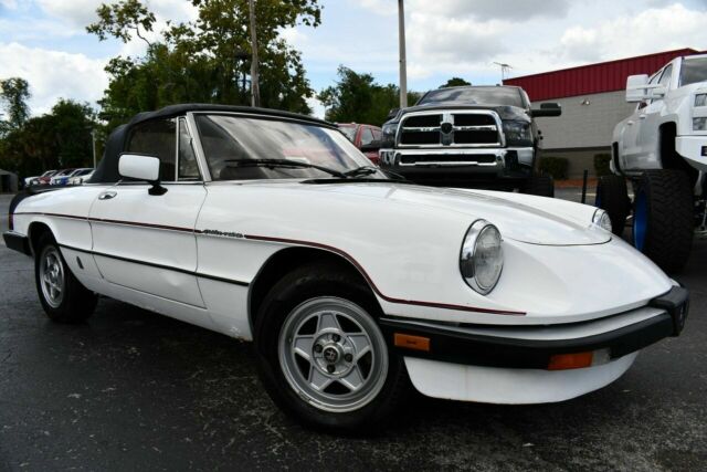 | LOW MILES!! CLEAN CAR FAX!! BEAUTIFUL 1985 ALFA ROMEO CONVERTIBLE!! WHITE EXTERIOR W/BLACK SOFT TOP CONVERTIBLE! CLEAN PREMIUM RED LEATHER INTERIOR! SUPER SMOOTH MANUAL TRANSMISSION! |