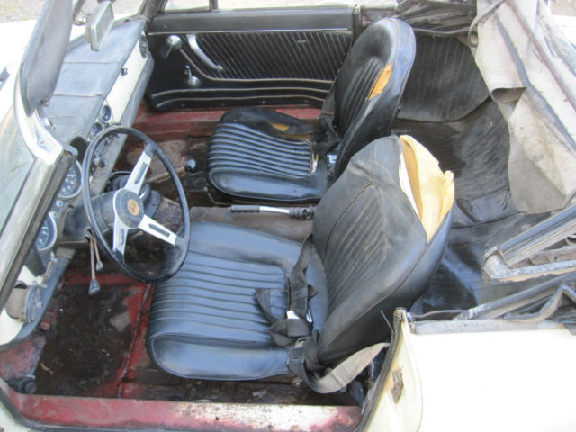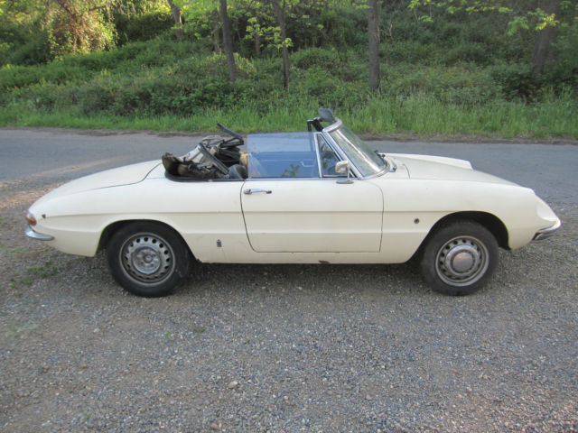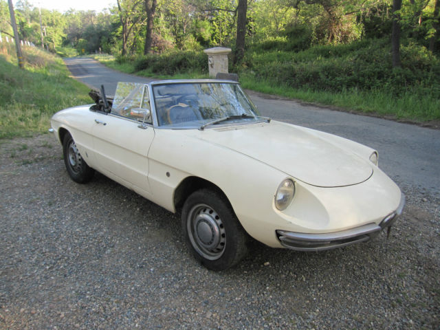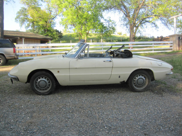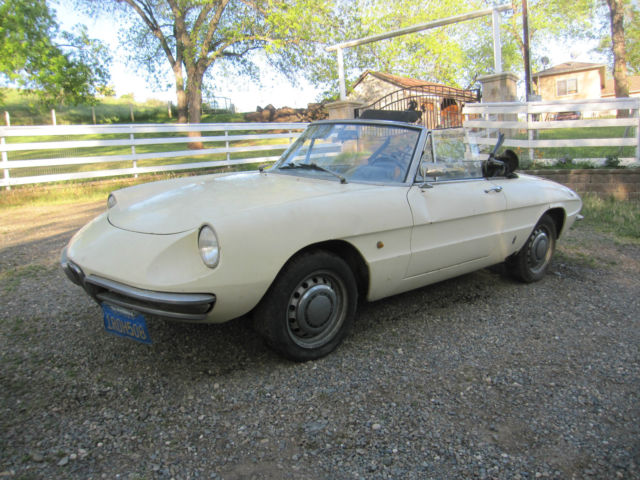 | Unlike many apocryphal "barn finds". this one actually came out of a barn in northern CA. where it had been stored for the last fifteen years. Sold new in Italy. imported to the U. S. around 1980. one owner in California since its arrival. Minor. repairable rust in the usual places (see photos). Runs and drives. shifts. steers. and stops. No overheating issues. Engine not the original. but is a 1966 engine (many Alfa engines from this era were changed early on due to manufacturing defects). In any event. this is the engine that was in the car when it was imported 35 years ago. Most electrical items are in working order. Interior trim tattered and weathered. replacement required. Soft top ripped. top frame in need of repair/replacement. Older repaint in a shade similar to the original color. Some minor storage damage. never wrecked. Original Euro-style headlamps. plexiglass covers missing. Four 14" wheels. one 15" wheel (spare). Original jack. Tires are NOT roadworthy. Clean CA title in hand. last registered in 1998. What you see is what you get. Questions? Please ring 925-667-1845 for answers (answers to emailed questions may take several days). CHASSIS NO. : 10503. 660583ENGINE NO. : 00502. 2275 * * There is no "B-I-N" price. If you need to "buy it now". call 925-667-1845 anytime to make your best offer. * * Vehicle offered for sale offline locally. so auction may end at any time. |