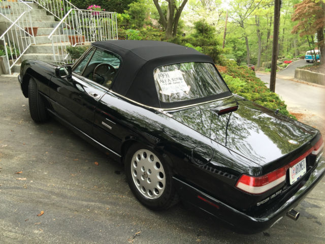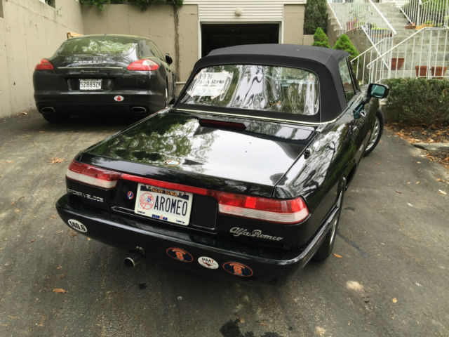 SUPER CLEAN 1991 ALFA ROMEO SPIDER VELOCE Immaculate Inside and Out. Some scratches on paint commensurate with a 25 year old car, otherwise perfect. To all: I am not trying to be arrogant here, only truthful and I hope you respect that. This is the second e-bay round on this car. The first was a fixed price at $9, 00 and I received two offers. One was respectable at $7, 00 but not enough; the other was $4, 00 from someone looking for a bargain, which I respect because that’s part of the whole e-bay thing. That being said, I know how much this car is worth. And I want whoever buys it to treasure it as much as I have and that begins with paying the right price. I bought it for $6, 00, put around $6, 00 into it and have driven it around 1, 00 miles per year. It is garaged and covered. I do not have to sell this car, and in fact I have very mixed feelings. The truth is that I am downsizing now that the kids are out of college and gone (who wants to pay NYS property taxes that they don’t have to), I just bought a Panamera and I really do not have the garage space. And I will not leave this car outside. So, I will make the space if need be. But first, I am going for one more round on e-bay. This time it will be a 7-day auction starting at $99. The Buy it Now price will still be $9, 00 and there will be a reserve. You know I already turned down a $7K offer. So govern yourselves accordingly. If I don’t sell it I at what I consider a very fair price, I will consider it divine provenance, take it off the market and probably keep it forever. Thanks for listening, fellow Alfaistas and good luck! Bought in 2004 in Greensboro, NC with mileage a little under 100, 00 and covered and garaged ever since. In the 12 years I have owned the car, I have driven it a total of 12, 00 miles. Zero Rust Rare Black Color Tan Full Leather Interior Aftermarket Simulated Wood Inserts Wood Steering Wheel, Gear Shift Lever and Parking Brake Lever Working Speedometer and Tachometer (Rare for this old of a car) New Convertible Top installed in 2006 New CD-Radio Stereo and Speakers-2006 New Pirelli Tires (all four) sometime around 2010 I have meticulous service records for the car since 2003 Regular oil changes, fluid changes, spark plug changes, lube and grease. Plus, since 2004 New battery-2013 New extra power receptacle-2013 New slave cylinder and clutch hose-2006 New rear brakes (rebuild including axle), new muffler, new engine mounts, complete engine tune up-2007 New suspension (Bilstein shocks, new ball joints, new tie rods, new control arms, new rear straps)-2006 New front brakes (Rotors and pads, flush, etc.)-2005 Maintenance on catalytic converter, differential pinion seal, fuel injector system, etc-2005 Car has been a gem... never stranded me (come to think of it, nobody in the entire NY Alfa Club has ever gotten stranded. For those who try to lump Alfas in with British Leyland cars or FIATs, they are in a whole different class... the original sports car. |