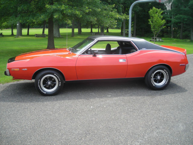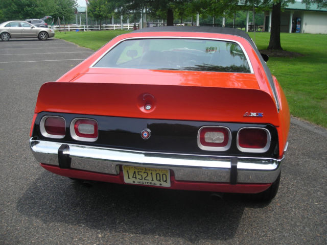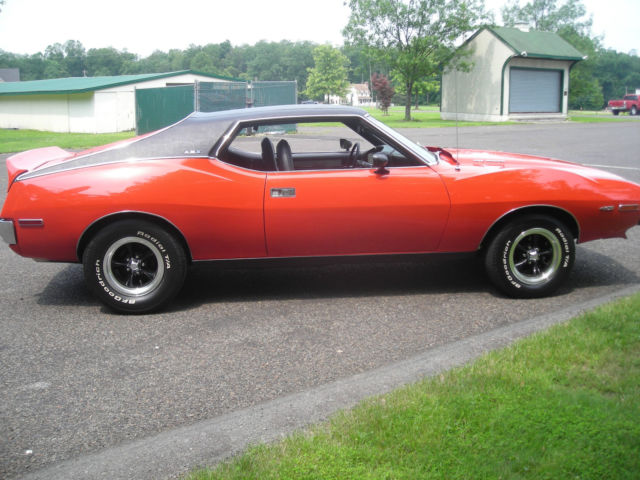 - Very Nice clean 1973 Amc Amx Javelin. Orig 401 engine rebuilt 10k miles ago along with the rebuilt 727 automatic transmission. Engine and trans redone with all stock components as in compression ratio and camshaft. Starts right up and runs strong with no smoke/ticks/knocks or leaks. The car has had 1 repaint 20 years ago in the factory correct "Trans-am red"and although it has some minor chips it still buffs up to a nice lustre and will be well represented at your local car show or cruise night, p close or far away its very respectable. Most of the trim work is great but a few small pieces can use attention. This is a true Z code car not a repower or a clone. Go-pack optioned twin grip rear ect. Below I will list all the new stuff I've done.