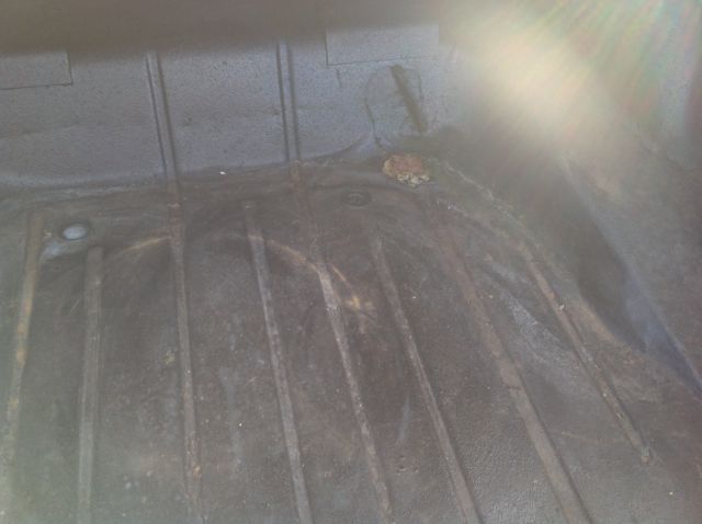 In the picture of the headliner it looks like something is on it but it is a reflection of a hubcap laying in the floor. The headliner is perfect. I have no way to get it in the air for an under side shot, ut the underside is in really good shape. You can see in the trunk pics there is no rust. |