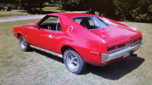 1970 AMC AMX. 360 4 barrel original. Power steering. Great condition original Magnum 500 wheels with nice tires. Recent tuneup just this past weekend included new starter, rebuilt carb and points. Trans had been switch to an automatic with console. This is a fast car... bumpers are in great condition, limited to no rust on the car. Paint is a 6-8 footer... it's an older restoration as cracks and bubbles starting to show. But buffed out would present well. Interior; seats are in great shape! New carpet! Door panels look good... the wood panel stuff could use some attention... polish? The plastic trim around the inner back could use some cleaning and paint but all there...chrome bumpers look great, trim all in very good shape, grille looks to have been repaired... if I kept this car, paint and some interior fine tuning and I would put this in the shows! They only made about 1583 of these 360's in 1970 and that was the last year... rare. Price of these are in the upper 20's to mid 30's of late... very cool car... Hemming Motor News... "Top 100 American Collector Cars Ever Made." Door tag: Body: R002626 Model: 7039-7 Trim: 0 31 F Paint: 90A (At very bottom of door tag) E004778 The details within the VIN: A0M397P108740 A = AMC 0 = 1970 M = 4 speed 3 = AMX Series 9 = 2 door 7 = AMX group P = Engine 360 4 barrel 1 = Plant: Kenosha Lakefront Plant 08740 = Serial Number I will sell overseas. Selling local as well. If reserve is not met please contact me for continued interest. If questions, please contact me. Deposit through PayPal or other arrangement within 48 hours of $500.00USD |