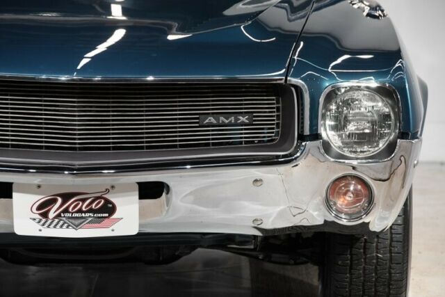 Just look at this honey! The factory colors are off the charts, redlines on chrome wheels are the cherry on top. Yes, it's a very clean car but it's striking good looks are what makes this one rise above the others. The last owner spent $5,000 recently getting the car dialed in from new brakes down to new bulbs. Receipts included. AMC was in the business of building safe and economical cars. They really shook things up with the American... Motors eXperimental aka AMX. A short wheelbase, 2 seater sports/muscle car. 3 power plants were available: 290, 343 or the big dog 390. This one is a genuine 390, 4-speed car with a posi. EXTERIOR: The Regatta blue looks fantastic. Has a very glossy, mirror like reflection. Jambs are clean, new sill plates. It's even slick to the touch. The body is exceptional. Looked down both sides, it's super straight. Panels fit nice. Chrome bumpers and mirror were redone. The stainless trim was professionally polished like chrome. Original grill, headlight bezels, taillight bezels and lenses all look excellent. Glass is all crystal clear, 1 stone chip in the windshield. New chrome Magnum 500 wheels with new Diamond Back radial redline tires really make it pop. INTERIOR: Very rare platinum interior. It is in excellent condition. Reclining bucket seats have correct reproduction upholstery, headrests are firm. Door panels are excellent originals. The entire dash area is in excellent condition. The woodgrain, bezels, knobs are mint. Has factory tachometer, original radio. Shows 74,760 miles that is claimed to be correct and it is very believable. The carpet which runs all the way up the back has been replaced. Has embroidered floormats. The headliner looks brand new. Has its original seatbelts. I opened the glove box and in the original plastic sleeve is the original owner's manual and service manual. ENGINE COMPARTMENT: Has correct 390 motor with 315 hp and a tire shredding 415 lbs of torque. They featured forged steel crank and rods. It succesfully completed a compression test: 180-190 lbs per cylinder. Stock distributor was converted to electronic. Stock Carter AFB carb was rebuilt. The compartment is cleaned up very nicely. The motor was neatly painted the correct aqua color. Air cleaner is complete, has the AMX decal on top the, heat riser tube is complete to the manifold. The often discarded original smog equipment is all hooked up. Even the spark plug wires are run neatly in their correct clips. Has correct hoses, clamps, stickers, washer bag, battery hold down etc. The engine bay still has it's original factory blue paint in very nice condition. Bottom of hood has new insulation. Overall it's very clean, orderly compartment. TRUNK COMPARTMENT: Collapsible spare on restored rim. Includes air bottle and jack. Blue paint under the mat is glossy. Also included in the trunk are 2 1969 license plates and a shop manual. New weatherstrip. UNDERSIDE: We have receipt for new brakes, new e-brake cables, new hoses, new master cylinder. $1,300 was spent going through the front end. Has KYB gas shocks, it's aligned and ready. In back it has new shocks, springs and shackles. Has original Bog Warner close ratio 4-speed. The original tag codes end in V, of the three 4-speeds available the V series is the most desirable. Has new clutch. Solid Missouri car. Floors appear to be very clean, has a nice coat of semi gloss black. Great sounding exhaust with crossover pipe. Stainless steel Magnaflow mufflers. Has posi rear. This car will give the new owner a great feeling. It will make your adrenaline rise when pushing that big block through the gears. It will make you proud when the compliments won't stop. It will boost your ego knowing you have something that others will wish they had! I, Jay Grams, take pride in personally writing the descriptions for virtually every car for about the last 30 years now. A significant amount of effort goes into fact checking. What I am offering is my professional impression of the vehicle. Our salesmen are happy to assist with descriptions and making sure your questions are answered. One great suggestion is letting us do a walk around video that explains the car's condition in detail. Don't be intimidated, contact sales now for a no pressure, no hassle experience! 815-323-6536 9-5 central Answered ASAP Radial redlines Magnum 500 wheels Posi Smog pump Tachometer Reclining seats Manuals Collapsible spare