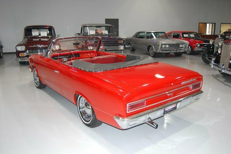 Picture yourself cruising in this cute, tangerine 1966 AMC Rambler American 440 Convertible. Powering this '66 AMC Rambler is an American Motors 232 Inline 6 Cylinder Engine. Anybody can drive this cute Rambler Convertible because it features an Automatic Transmission, an $187 option back in 1966. With 4 whitewall radial tires with baby moon hubcaps, ensures that this American Motors Convertible cruises down the road smoothly. The black vinyl power top is also in very nice shape should you ever need it and it goes up and down with the push of a button. This Rambler American is finished in Tangerine Metallic paint that makes this car a real head-turner. The interior of this AMC Convertible features a red vinyl bench seat interior with black piping that matches the exterior look of the car. Besides the Sony aftermarket entertainment system, the dash is stock and appears to be like it was when it rolled off the factory floor. If you're looking for a head turning convertible to cruise around in on a nice summer day, this 1966 AMC Rambler American 440 Convertible is the car you!