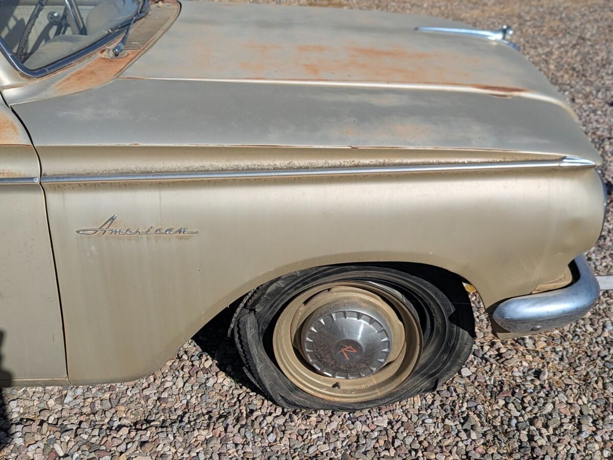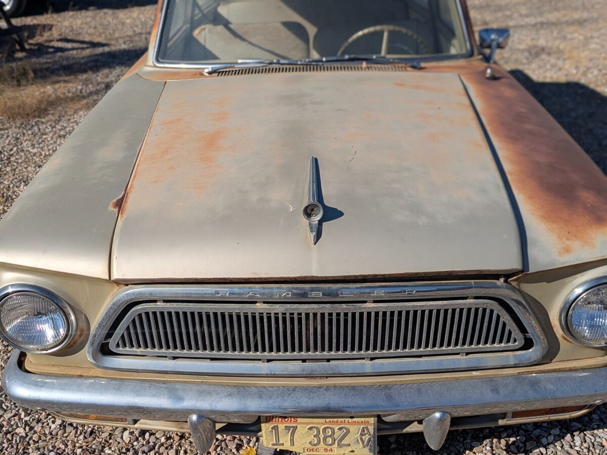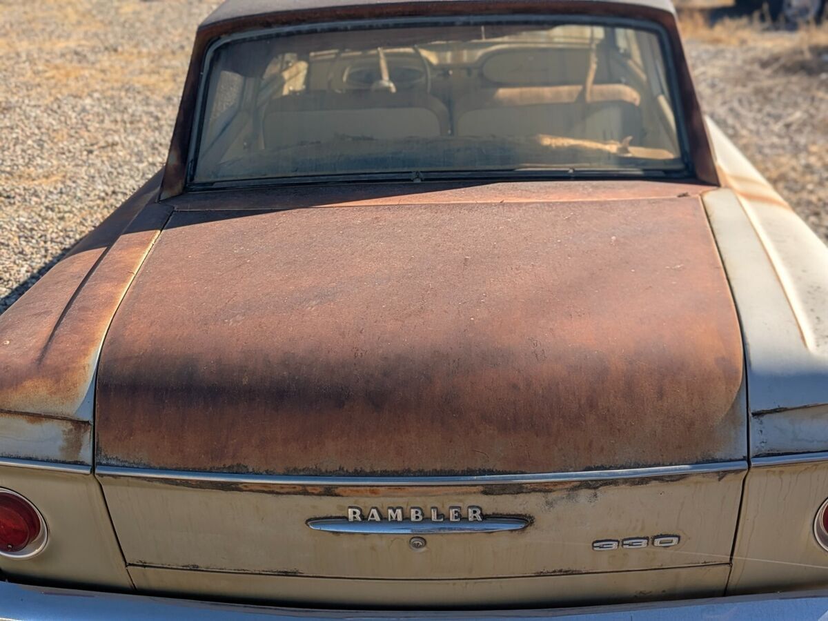 This vehicle has been stored at my facility for the last 10 years in Tucson,AZ.......I know what your thinking YES!!!!! ARIZONA!!!!! ONE OF THE DRYEST PLACES IN THE USA!!!! THATS GOOD FOR ANY STEEL CAR..... THATS A PLUS.....The owner decided he didnt want the hassle of selling it or paying for storage, so he signed the title into my name. CLEAN TITLE. This Rambler is ALL ORIGINAL check out the pictures if you dont believe me. This Rambler only has 14404 MILES!!!!!!ORIGINAL MILES!!!!! NO JOKE TAKE A LOOK AT THE INTERIOR!!!!!. As for under the hood you can see its all original i have been debating about seeing if it starts up and runs or not from the looks of it it seems it would the owner did say he drove it to storage and had put it on jack stands to keep the tires from sitting on the dirt the owner got sick and thats why it ended up living in storageThe VIN reads B566391I looked it up and on my research it decodes to1963AMCAMERICAN 6330TRIM CODE: 316-CBODY CODE:048595MODEL CODE: 6306-2PAINT CODE: P41 CORSICAN GOLD POLY