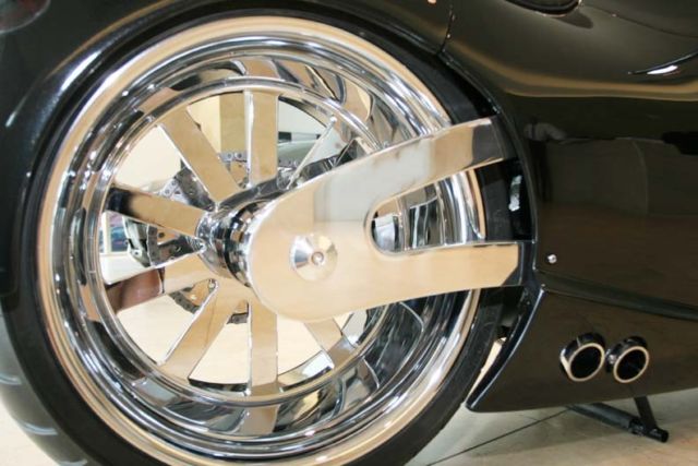 Hello and thank you for looking. This auction is for a one-of-kind meaning the ONLY ONE IN THE ENTIRE WORLD. hand built Aston Martin Race Themed Custom Chopper. There are only two of these bikes in the world. The first one. black in all the pictures. was built in 2007 and was published world wide. inducted into the AMA American Motorcycle Association Hall of Fame and sat there for two and a half years. This is the second and last bike like this in the world and will be built to full Aston Martin Racing Livery. The one image showing the bike in the race theme IS NOT THE FINISHED PRODUCT. it is a quick Photoshop rendering to give you an idea. The bike is still under construction (see picture of bike on lift) but we are offering it for sale to a lucky buyer now. The bike can be finished completely to your liking. it can be like the black bike in any color you wish or finish in a full blown racing theme and any race theme you like. We can match the bike to your car if so desired or we can custom match a car and bike for you. To keep the bike the only one in the world we would like to do the racing theme however it is your decision. The bike is powered with a Triumph Speed Triple Engine giving it the perfect sound for a bike of this design. Almost every part is hand built to the utmost quality. The race theme bike will have custom features to give it a true race theme. Please feel free to call me for details and questions at 407-529-9920. This sale will require half down and balance one delivery. We are the builders of the first bike and the Ferrari F1 Themed Custom Chopper also shown so we know what we are doing. We do not accept PayPal.
