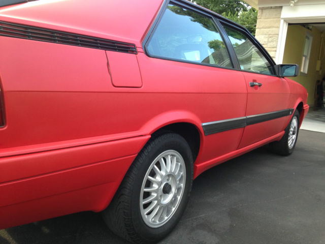 Car is currently plasti dipped in red mate but the body is completely primed under, o rust, eady for paint with minimal prep work needed. I purchased the car two years ago from Connecticut and drove it back to Indianapolis without any issues. Previously the car was owned in New York and Connecticut andused occasionally as a weekend enjoyment. I am the third owner, ll matching numbers, ileage is current. Body panels are all original with the exception of the front doors and hood. Both doors have deep dents in them and was easier/cheaper to replace then do body work to make them flawless. Hood had a small dent and afew rust spotsso I had that replaced also. Text or call 317- 361-5818 if you have any additional questions. Lots of time and money spent on this Audi Coupe G, o please no lowball offers, know the value of this hard to find coupes in this condition. No joyrides unless you have the money in hand to make a deal. Selling the Audi "as is", where is" and no warranties of any type.