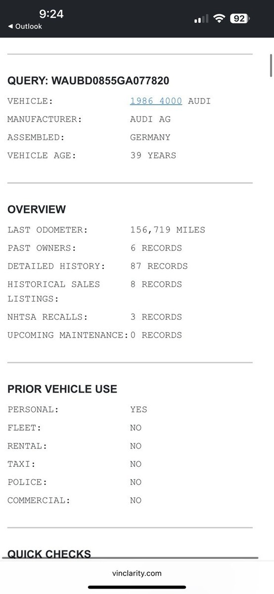 AUDI COUPE GT 1986 White / Tan Interior/ 5 Speed Manual Car. All Original |