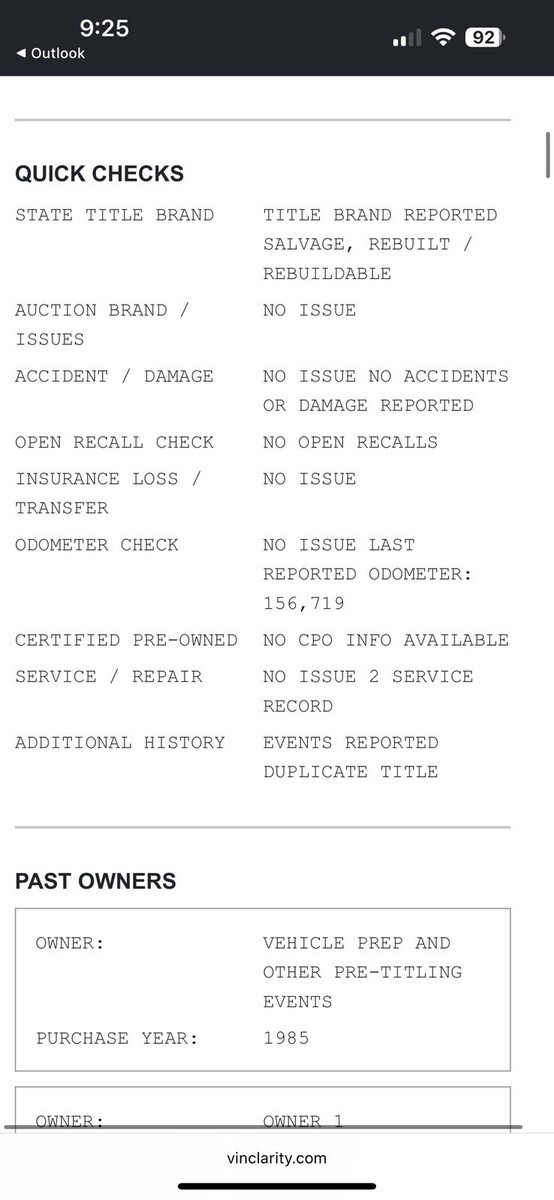 | Vehicle Title: | Rebuilt, Rebuildable & Reconstructed |