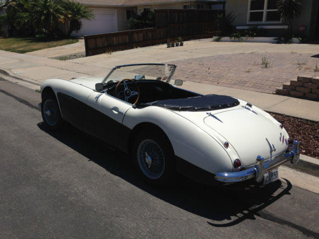 We have available from the estate of Aaron Roberts a 1961 BT7 Austin Healey 3000. Mileage - 92,027. Car # HBN7L/13150. VIN#3050BT7/10008. 6 cylinder 2912cc - 2x1 bbl carbs. Fully equipped with overdrive, ire wheels, oft top, onneau and side curtains. The car has been fitted with a wood rimmed steering wheel and the leather seats have recently been redone. This car starts, uns and drives very well. The transmission shifts nicely and the power from the inline six is smooth and torquey. This car is equipped with front disc brakes from the factory so the car stops without any fuss. |