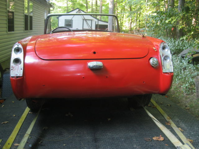 | You are looking at a 1963 Austin Healey PROJECT car. It is a unfinished project that I ended up with. The guy that paid me with this car started working on it years ago and put less than 100 miles on it since 1982. It was a project for him that never got finished. Maybe you are the one to get this classic back on the road. The paint was sprayed on by a friend and it is just to seal the car so that it doesn't rust away (It will have to be repainted).The motor turns over but have not had it started. It will need complete interior restored and or replaced. I put four good tires on it so it could be rolled around. What you see in the pics is what you get. If you have any question ask before bidding. There is NO reserve so good luck bidding and thanks for looking |