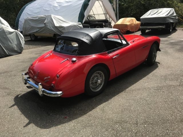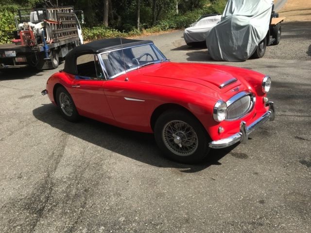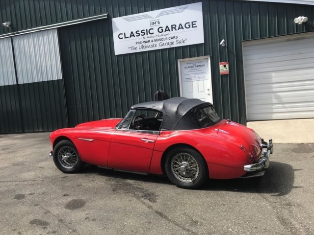 Jims Classic Garage is pleased to announce the newest arrival of cars for sale, a 1963 Austin Healey 3000 MK II BJ7This beautiful example of sports car beauty has been well preserved over the years, and is now for sale for the first time in over a dozen years.The previous owner states that this is survivor quality, with the original “Colorado red” paint still in tact, along with its black with red piping interior seats in great shape. There have been only 2 owners before we bought it, and the odometer shows only 60,685 miles. The 2912cc engine along with a 4 speed manual transmission and dual SU HS4 Carburators help scoot this beauty down the road nicely. Want a little extra while on the freeway, turn on the electric overdrive system.The steering wheel is adjustable. 72 spoke chrome wire wheels give the car the look it needs. The undercarriage is dirty, but no rust to speak of, with the exception of surface rust. There’s quite a few other options to mention in the ad, however, I can tell you personally, that this car runs excellent and meets the needs for me to offer it under our “Jim's Classic Personal Guarantee Program” Check out our website for addition information. In a nutshell, if you were to come look at this car and find that our description was not even close to this cars overall condition, we’ll pay for your trip, hotel, air, food,etc. to come see the car.The spare tire also comes with all the original tools, including the lead hammer for the knock off wheels, as well as a wood makeshift wrench which works quite well.We typically clean, and use a POR15 rust inhibitor product on all inner fender wells, as well as the frame and floorboards on all our Shop cars we own. In the even we get a full price offer, we will make the undercarriage of this car look brand new before we ship it/deliver itWe have a binder full of receipts on this car dating back to when it was bought new, and including the original Title from when it was bought new in Oklahoma. (Not a copy, but the original)For additional information, please call Gab at 425-583-2707Or Jim st 206-406-1313