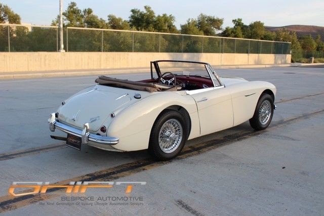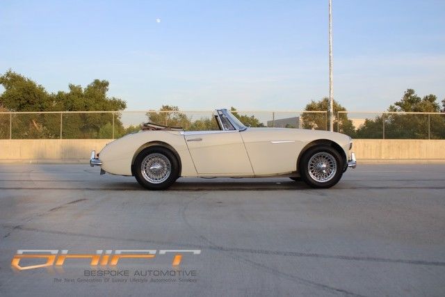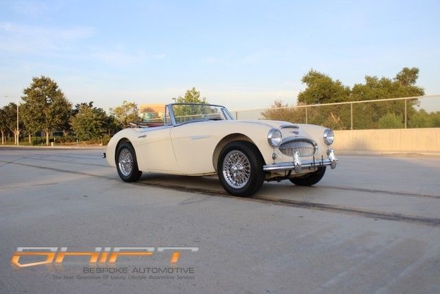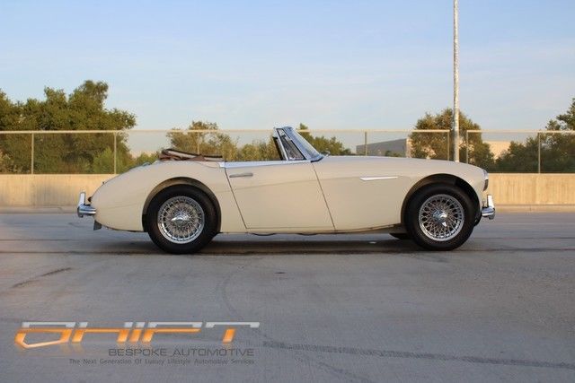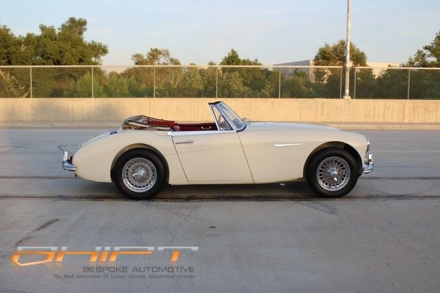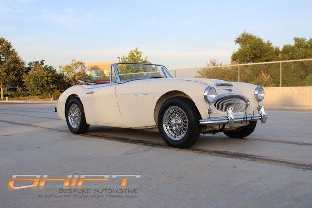 1963 Austin Healey 3000 Mark II Austin-Healey’s handsome new 100/4 entered the market in 1953 with a 2.6-liter four-cylinder engine in a traditional chassis with independent front suspension and a live rear axle. A new grille and a 2.6-liter straight six yielded the 100/6 in 1957, which was in turn replaced by the 3000 of 1959. Big news for the 3000 included front disc brakes and a 124-hp 2,912cc straight-six. Available in two and four-seat versions, almost 14,000 were sold before it was replaced with the 3000 MkII in 1961. The big difference was a triple-carburetor engine rated at 132 horsepower. Late in 1962, the two-seater was dropped, roll-up windows were introduced and the revised twin carburetors added 2 horsepower. We are pleased to offer this restored Healey BJ7, a 10 year old restoration, driven and enjoyed since it's ground-up restoration. It is still in excellent condition, meticulously maintained by it's two owners since it's re-birth. As shown in the photos, this overdrive stick shift British masterpiece comes with all tools, top cover, tonneau and a Heritage Trust Certificate and is shown in it's original exterior color of Ivory with a stunning new red interior.