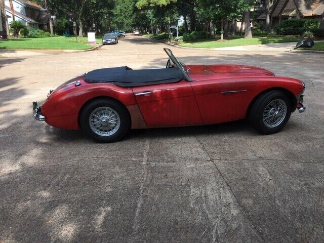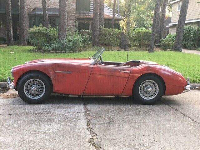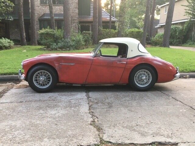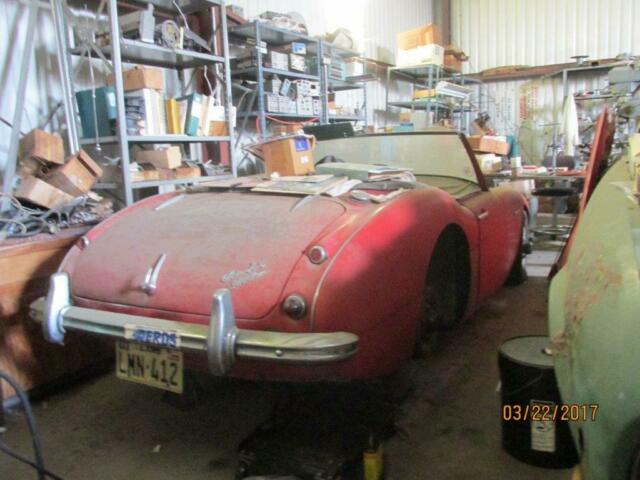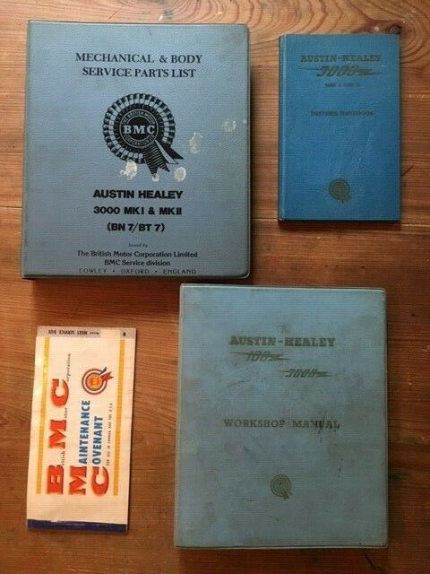 1962 Austin Healey 3000 MkII HBT7 Tri-Carb One-owner driver and complete survivor This 1962 Austin-Healey 3000 BT7 was born in September of 1961 and sold in December of '62 for $3,300. Imported by Motor Sales Company of Detroit Michigan, it was delivered to Falvey Motor Sales Company for a young navy lieutenant and his wife. She later said the car was the equivalent to a year of her pay. In 1964 the couple moved to Virginia and then Houston in 1969, where it has stayed. Tri-carbs are a "one year" model with three SU HS4 carburetors, vertical slates in the engine bay scoop & grill and 132 bhp. 5,451 Mk IIs were produced. Parked in 1986 after a neighbor backed into it, she was spared 33 years of cut-corner repairs and wear and tear. Odometer shows 44,323. It was disconnected when found and I believe is not far off. Today the car runs and drives. Close to 50 lbs. oil pressure at start and settles to 35# after 15 minutes. You can enjoy it now and tackle whatever you want over the winter. There are a lot of pictures in a drop box folder:https://www.dropbox.com/sh/llgtoryitjqtc6p/AABUrBGpNDqofNKwJkvnGZvaa?dl=0 She matches the included factory window card, sales documentation and BMC maintenance covenant: Colorado Red over red interior, four-speed manual transmission, side shifter, Laycock overdrive, 60-spoke wheels, tonneau cover, black soft top and side curtains with bag. Extreme effort was taken to preserve originality and serviceable parts. It's a driving barn find. Because of the emphasis on correctness and completeness, this car is a top-pick for restoration and its condition is unusually sound. The only missing pieces are the spark plug spanner and tommy-bar. Tool bag and battery covers are original vinyl. Lights, gauges, switches, parking brake, + earth and overdrive work. Literally the only needed repair is a leaky heater core and the + battery cable has a modern pinch-clamp instead of the lead "helmet" with screw that taps into the battery post. She has a dent in the left front fender and some rust. Documented in pictures, rust is in the areas in front of both rear wheels—around the pillar, sill and triangular gussets. Pans are solid and many pictures document condition. The original paint is very worn and hides no surprises. Primer I assume is pre-'85.If any major body repair was made along the way, surely, it would be popping-out by now. I believe the paint condition is a big plus for someone looking for the right Healy to restore to his standards. In 1971 an aftermarket hardtop was ordered; correspondence with Parrish Plastics is included. Original owner was the president of the regional AH club and active in national events. A file drawer of documentation, receipts, old catalogues, magazines and fun stuff comes with this Healey. Plus a small mountain of parts and spares. Nearly 150 pictures available. They accurately represent this car and its details. Healey owners will find this car a valuable documentation resource. Please let me know if additional pictures are desired; tell me precisely what you are exploring. Lift shots difficult at this point. Documentation, bringing car back to life and known condition/issues: Engine · Engine number matches sales documentation; no signs of being out of the car · Pan dropped, cleaned and gasket replaced before first start · Harmonic balancer re-built by Dampner Dudes; new Woodruff key installed · Cylinders lubricated and hand-turned for two weeks before starting · Oil flushed multiple times · Distributor cleaned and greased · New and correct spark plugs, wires, condenser and distributor cap · New valve cover gasket · Original oil filter housing retained · Exhaust down-pipes replaced; new exhaust gaskets installed; copper nuts used · New upper and lower motor mount bushings · Valves set to factory specifications · Not a rebuilt engine - engine rear seal leaks and oil pressure drops to 35 at operating temperature. Fuel · New gas tank · New sending unit · New tank seal to floor (poor quality reproduction) · Original 12V pump rebuilt by SU Fuel Pump · Inline fuel filter added before carbs; adapter made, original fittings remain intact. Carbs · Rebuilt, re-plated and bench tuned; worth the $1,000 as it started like it should · Correct linkage pieces refurbished - all linkage pieces are present · Correct air cleaners refurbished and painted in hammertone · Pivot busing replaced · Tuned like they should be · Includes the three rare carb vent tubes, although one is heat damaged · Tri-carbs are warm natured; cold starts are not crisp. Cooling · Cooling passages flushed extensively · Radiator cleaned · New water pump and gasket installed · New fan belt · New hoses · Correct wire-type hose clamps; I hate el-cheapo clamps! · By-passed the heater as the core leaks; easy winter project · Two heater taps included - one sealed in the open position and one sealed closed. Transmission · Replaced transmission master cylinder, original retained · New slave cylinder, original retained · New slave cylinder hose · New transmission mounts · Fluid flushed several times · Overdrive works; 60 mph is about 2,400 in fourth gear · Not rebuilt transmission - leaks and first gear/second gear synchros worn; these boxes were not designed for speed shifting. Brakes · Replaced brake master cylinder, original retained · Cleaned and resealed brake fluid reservoir · Changed brake fluid with Dot 3; flushed several times · Rebuilt original calipers · New brake pads · New front brake hoses · New rear brake hose · Replaced rear brake cylinders, originals retained · Replaced brake shoes · Backing plates removed, cleaned and painted · Adjusted rear brakes · Adjusted parking brake · Brakes are so-so - new shoes are not bedded and need more miles; original rotors are glazed and could use a clean-up turn. Electric · Original Union FP 664 ignition/bonnet key (remember doors did not lock) · Original generator rebuilt · Original start