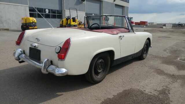 A real decent little Austin Sprite Mark 111, floors, trunk sub frame in excellent condition with no rust ever!Quarter panels have had some work done to them 30 or so years ago, along with a repaint from red to white.Car sat for inside a heated warehouse from 1988 till 2019, which saved it from deterioration.Interior is in great condition with rugs being the only issue, windshield has crack left side about 3 inches long.Has no roof, only the cabin tonneau cover which is original to the car and in near new condition.I do not have the hubcaps, spare or jacking equipment, likely lost or misplaced during its long term slumber.All electrical work as they should, no issues there.Has been properly put back on road to running and driving condition, with fluids replaced, gas tank flushed etc.New tires and brakes were installed along with muffler and tail pipe.Has been road tested thoroughly at highway speeds with no issues.Great little car ready to be taken to the next level or use as a Weekend driver Please when hitting the buy it now option or make an offer on the Auction!That you meant to do so and are prepared to complete transaction!Thank you canadianpursuitcars