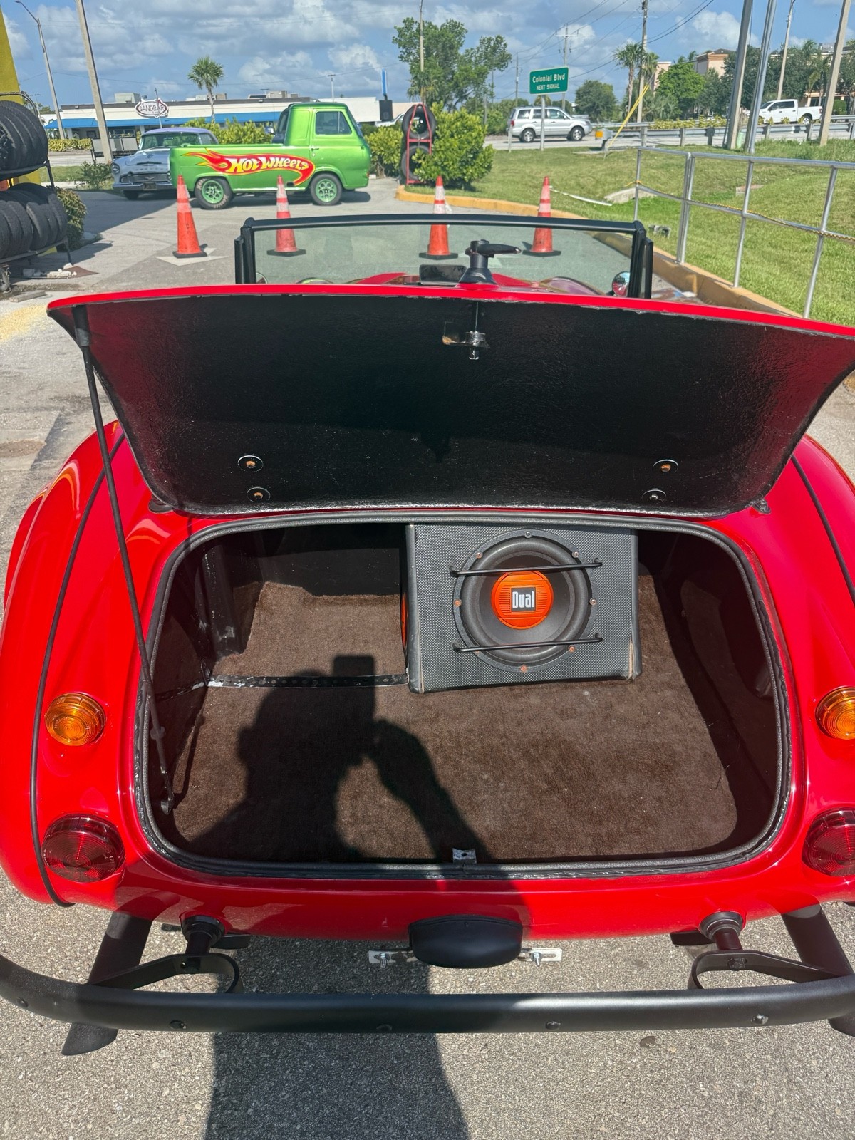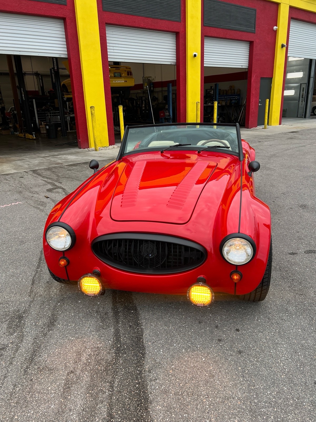 This 1965 Austin Healey 3000 is a modified classic car with a vibrant red exterior and updated interior. The owner has put 26953 miles on the vehicle, which runs smoothly and is perfect for weekend drives. With a clean title, this Austin Healey is sure to turn heads and provide a fun and luxurious driving experience for any car enthusiast. Vehicle Details This 1965 Austin Healey 3000 replica, has a Chevy 350 engine and 350 Automatic transmission AC front disc brakes Power steering, Great Tires |
