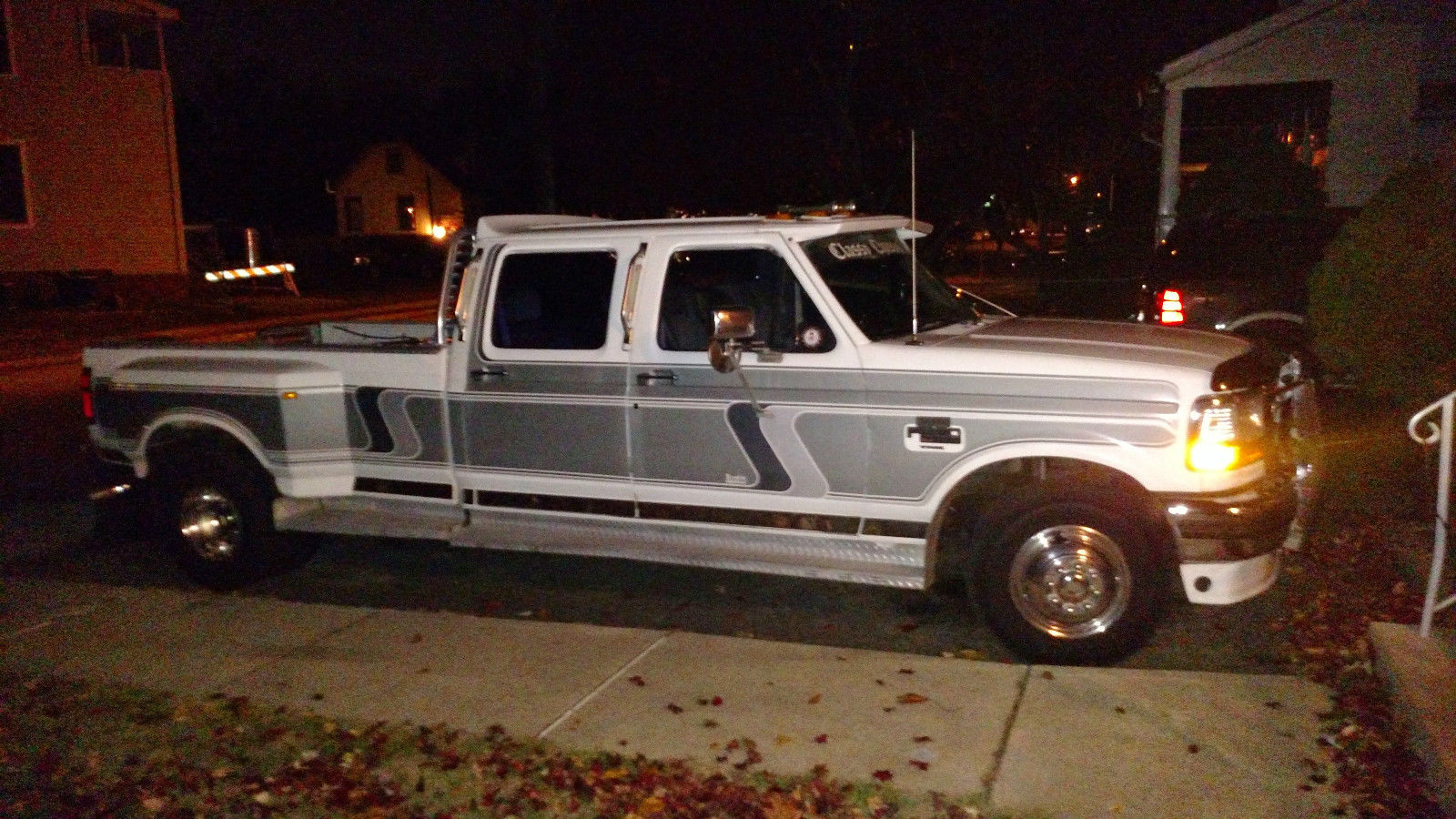 | Up for auction is a real nice "Texas Caddy" Ford F350 Centurian Crewcab Dually. With only 85000 miles it is barely broken in. This truck is LOADED. There is a 90 gallon fuel cell in the bed. It is set up for a 5th Wheel trailer. It also has an aftermarket AM/FM CD and Cassette. The 7. 3 IDI Diesel also has a BANKS Turbo installed by the original Ford Dealer. This Beauty also has Aluminum Running Boards. Chrome Grille Guard. Custom Tailgate. Aluminum Alloy Wheels. Air Dam. Bug Shield. Front Visor. Rear Cab Spoiler. Rear Window Guard. Rear Tow Hitch Chrome Bumper. Side Assist Handles. NEW Tires. Brakes and Transmission. Kelly Blue Book $ 12300. Must sell started new business and don't need it any more. There is a lot of life still left in this Truck. On Nov-20-14 at 09:56:09 PST. seller added the following information: Up for auction is a real nice "Texas Caddy" Ford F350 Centurian Crewcab Dually. With only 85000 miles it is barely broken in. This truck is LOADED. There is a 90 gallon fuel cell in the bed. It is set up for a 5th Wheel trailer. It also has an aftermarket AM/FM CD and Cassette. The 7. 3 IDI Diesel also has a BANKS Turbo installed by the original Ford Dealer. This Beauty also has Aluminum Running Boards. Chrome Grille Guard. Custom Tailgate. . Air Dam. Bug Shield. Front Visor. Rear Cab Spoiler. Rear Window Guard. Rear Tow Hitch Chrome Bumper. Side Assist Handles. NEW Tires. Brakes and Transmission. Kelly Blue Book $ 12300. Must sell started new business and don't need it any more. There is a lot of life still left in this Truck |