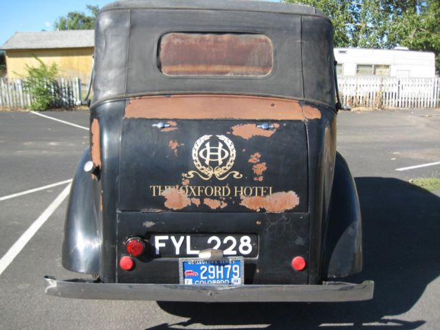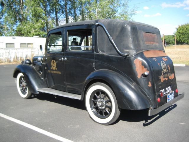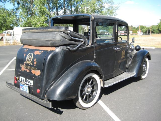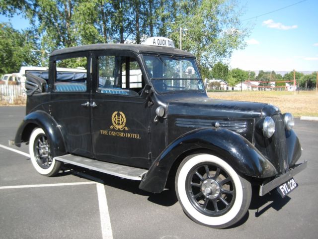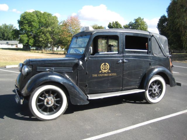Up for auction is a 1935 Austin 12/4 London Taxi Low Loader. This Taxi was built by theAustin London Taxicab Cop. The AustinLondon taxicab used a modified Austin Healy Twelve-Four chassis, Clothed with new Body designed byLondon's largest Taxicab retailer and dealer Mann & Overton of London Coachbuilder.This particular Taxi was used to transport patrons from the Oxford Hotel in Denver Colorado, back and forth to the train station. The body is original with great patina and has the Oxford Hotel in gold paint on the doors& trunk. Body only has a couple of very small dents other that that it is very sound. (Please look at pictures closely) The only rust at all is one spot in the trunk under the spare tire well about 6" round. The rest of the body has no rust other than where some paint has worn off on the top of the trunk,and that is just on the surface. The interior is excellent, as is the original wood, and all shows well for its age. (The interior could have been redone some time in the past.) The rear interiorcompartment has two jump seats anda rear lounge where you sit in comfort in it's blue upholstery, trimmed in real wood.(looks cool) That compartment'sconvertible bonnet folds down for niceweather and is ingood condition, but the rear windowhas darkened with age. (It's the original back window and is plastic.)A pass throughglass window opens between the front and rear compartments, also the windshield opens for fresh air.The front compartment is for the driver and it has it's working Bell Punch (London Model) Taximeter. (This Taxi drives on the right side.) The original4 cylinder engine has been replaced some time ago with a Buick Nail Head that runs strong and starts easy. It has the Buick automatic transmission coupled to the original rear end. The brakes are the originals but work well. Tires are new wide whites and it has a new battery. This Taxi would be great for the coolest Street Rod or Hot Rod ever. ( It would turn heads) You couldadvertising a business with it, use it forweddings, Graduations or what ever????? This LondonTaxi is mostly originaland is showingsome age, but it is in good condition for its age. (Remember it' a 1935 Austin!) I'm listingthis London Taxi for a friend and will take all questions to him. Buyer is responsible for shipping and all shipping costs. We will help with loading on our end and in anyway we can. For your questions please call Bill (208)750-0000