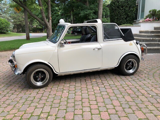 The Legend of 1978 Classic Convertible Mini Rebirth This 1978 Austin Mini was acquired by the current owner in late 2016 from the United Kingdom. It was then shipped to Canada in the same year The Mini was originally in ocean blue color and was converted into a convertible in UK by the previous owner who stored the car for over 10 years. It came with beige soft top and bumper/lights guards which were being used in the old days in Europe. Very rare these days. You can see a few pictures taken when it was in UK. This Mini has a 1275 cc engine with twin SU carburetors and manual transmission. Once the Mini arrived Canada, it began its full restoration mission. All the mechanical parts and seats were taken out leaving a bare body which was then stripped down to bare metal. All the surface rust which was not many were being fixed and the complete body panels were rust proved and primed. The panels have been applied with four layers of English white paint and three layers of clear coatings. At the same time, the Mini has gone through a complete servicing of the mechanical components including re-tooling of the engine head, cleaning and servicing the twin carburetors, all the rubber hoses for the engine were replaced with Minispares high quality blue hoses. Engine oils were being drained and replaced with fresh engine oil. A new fuel pump is being replaced. A new alternator and new radiator were also installed. As the Mini is RHD from UK, therefore a new LHD steering rack was being installed to convert the Mini into a LHD. In terms of the brake system, front rotors were replaced with new pads and the calibers were serviced. The rear drums were services and new pads were installed. Both the front and rear suspension springs were replaced with a performance set. A new down pipe and exhaust system were being installed. A complete electrical harness has been replaced with a new one. Both headlights and side lights were replaced with new ones. Two new spot lights were installed onto the front bumper guard to improve night driving. A new walnut dash board was installed using the existing gauges which are still in good running condition. A new stereo unit with MP3 and USB input was also installed. A new retro steering wheel with new turning indicator arm were installed to make a classic look. In order to strengthen the convertible body and improve the safety feature for the Mini, a new roll bar was custom-made which meets the track racing standard. The soft top was also custom made with high quality water-proof mohair cloth material with a tonneau made of the same material. With all of the above being done, the following final touch is being made. The two side mirrors were replaced with new ones. A new set of 16? alloy wheel and tires were being installed. Please note that the front wheel arches were being widened to allow the front wheel free clearance. A Mini 40 Anniversary boot badge was installed and a matching 40 Anniversary body stripe was also put on. The door cards are wrapped with an Union Jack graphic. Both the front seats were replaced with a set of leather seats which came from a VW Jetta which are in very good shape. All the front and rear seat belts were replaced with new red ones. New leather seat covering was being applied to the rear bench seat. The whole restoration project took about a year and this beautiful Convertible Mini was put on the road in the summer of 2018. All the restoration job was being done by various Classic Car specialists under the direction of the current owner. Since then, about 300 km were put on it primarily going to various Mini Meets and Festivals. It won a Frist Prize in the under 1300 c.c. British Classic Car Category in the Bris-on-Lake Event at Port Perry, Ontario in that summer. This Mini never runs under the rain not to mention the snow in winter. It is always stored under roof in a heated and air-free environment. Engine oil and filter, spark plug, tune up and servicing have been done in June this year as usual after the winter month storage. A new twin-carburetor was installed early this year. This Classic Mini is show condition and no issue what so ever and ready for any enjoyable cruising trips. The mileage cannot be verified as it is classic car and the odometer might have been replaced at some point. A Mini Specifications List and a list of all the new parts being installed will be provided on sale for reference. All available invoices and paper work with a photo album for the Mini restoration will be also be provided too. This Mini was commissioned by Christian Dior in 2021 for its new perfume "Miss Dior" launch for a three show at Shopping Malls in Toronto. See pictures with flowers. The reason for the sale is mainly the owner wants to move on to another restoration project. He has done 5 restoration for Classic Minis over the last 20 years and indeed he is a Mini enthusiastBuyer need to pick up the car and test drive can be arranged. Serious buyers to make bids only. Buyer needs to arrange his/her own shipping but the current owner can provide assistance.Successful bidder requires to make a non-refundable deposit of $500 within 48 hours and the balance can be paid within 7 days by bank wired transfer or cash on collection. |
