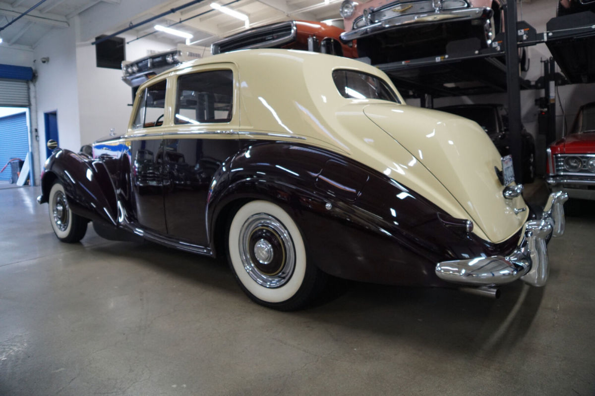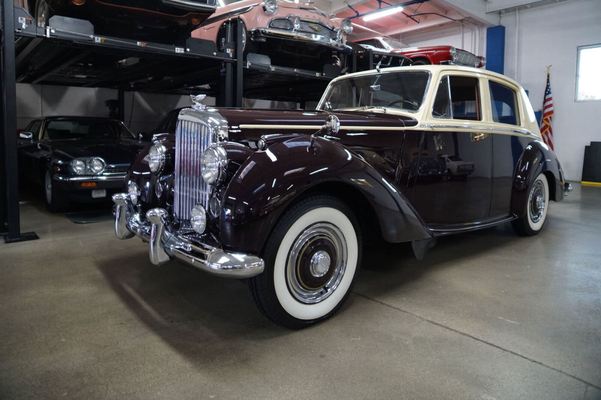 West Coast Classics are proud to present a very rare and absolutely exceptional and exquisite example of this 1953 Bentley R-Type 4 Door LHD 4 1/2 litre 'Big Bore' sedan with factory optional 4 speed automatic transmission and 1 of only some 2,323 built in it's three year production run between 1952-55 and a very rare Left Hand drive example with air conditioning. This particular example is strikingly finished in a 'Royal Garnet over Cream' two-tone color complete with hand painted pin stripes which is matched to a beautiful and also extraordinarily condition full 'Claret with White Piping' leather interior and carpeting. The car has an original Mohair headliner and it's original factory sliding sunroof. This car was frame up restored with no expense spared in recent years and has been stored in a climate controlled facility by it's southern California collector/owner since the restoration with the two-tone paint, the leather & wood interior, all the chrome work including the original and very rare Bentley grille and front and rear bumpers, all restored to obviously concours standards and this car is very likely one of the finest R-Type examples in existence anywhere today. The 5-digit odometer shows just over 22k miles and the car boasts working modern day air conditioning and the voltage has been upgraded to 12 volts. The car drives extraordinarily well with the 4 speed automatic transmission matched to the original 4.5L 6 cylinder engine making for an extremely strong and responsive drive and the car drives as straight as an arrow with no strange road wobbles, shakes or rattles. It is a truly remarkable driver with supremely smooth and easy transmission shifts in all gears! The car has adjustable ride control, Lucas fog lights, twin picnic tables, factory tools and a mohair headliner. Following World War II, a more global approach to luxury car-building was needed and it was this realization that would lead Bentley to start production of their 'standard steel' models which started for the first time in 1946 with the Mark VI. These were the first models to have a standard body built in-house by Bentley which were made entirely out of steel. The idea was that for the first time customers who otherwise would not have been in the position to commission a coachbuilding firm would be able to buy a complete car outright from Bentley instead, something which was far from the norm for luxury cars before WWII. Bentley would obviously still supply a chassis to a coachbuilder should the customer be in a position to request it. Enter then, in 1946, the Bentley MkVI. The first cars were delivered in September and the order books quickly filled, leading to a three-year waiting list. The dignified shape was derived from prototype bodywork seen on the pre-war Mk V and it was the first production Royce or Bentley with faired-in headlights. Running 16in steel wheels on a 10ft wheelbase, the riveted, channel-section rationalised chassis was a shorter version of the frame found under the Silver Wraith, the grander cousin of the MkVI, which was exclusively coachbuilt in wood and aluminium. It was the first Bentley to be assembled and constructed fully in-house at Crewe for painting and fitting out with traditional wood and leather.The Bentley Mark VI was the first Bentley factory finished car, reflecting a change in Rolls-Royce policy from strictly hand-built cars to 'standardized' bodies that could be produced in greater numbers at the firm's new factory at Crewe and was named the Mark VI and was produced from 1946 to 1952. Like pre-war Bentley's they were large, stately and impressive and featured rear hinged 'suicide' doors at the front with concealed hinges, a sliding sunroof, a permanently closed windscreen with an electric defrosting and demisting unit hidden in the scuttle and a second heater that made use of the coolant and was fitted with an electric fan beneath the left front seat. Twin screen window wipers were fitted and provision was made for the fitting of a radio with a short and flexibly mounted aerial that could be swung up above the center of the screen. The rugged steel-bodied standard cars proved to have an immediately strong appeal to the increased market. The Mark VI was an enormous success, comparatively speaking, with 5,200 cars sold between 1946 and 1952, a huge amount of car's for the prestigious Bentley/Rolls Royce marque, and a further 2,300 R Types were sold between 1952 and 1955. Numbers like these could never have been achieved without the standard steel bodies, although it's important to remember that Bentley still managed to continue to offer the coachbuilt cars, as before although in obviously rarer numbers. It's true that these Bentley models were very similar in almost every way to their sister model offered by Rolls Royce, the Silver Dawn & Silver Wraith, but the Bentley's cars were actually far better-selling than those of its parent company. These post war Bentley's were to have their first real success under RR ownership with the Mark VI and later the R-Type and these cars would serve as the paramount example of what was to later define a postwar luxury car. The 1953 R-Type was essentially the same car as the Mark VI, but with a larger trunk, which prompted Bentley to change the name to R Type, although they are essentially the same car. There would prove to be no shortage of customers. New cars of every kind were in short supply yet there was still plenty of money about in certain sectors after the war ended: the flipside to the grim measures of the time was that there were still lots of wealthy customers for these cars who far from being crushed and exhausted by the war had actually been able to still thrive financially. These tycoons, across the UK and the still-existing colonies, as well as here in the States, were more than willing to spend the exorbitant cost of it's day for the ultimate luxury saloon, and the Bentley cars with their legendary racing heritage w