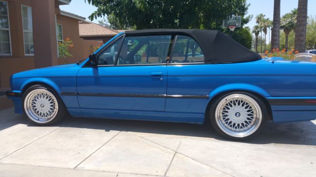 Hi everyone up for auction is my Arizona owned (no rust) 91 bmw 318i laguna seca blue convertible bmw. Car comes with tons of new parts,modern upgrades and fresh paint.. heres of list of parts and stuff added.. new ppg paint full adjustable coilover dampers new 17x8.5 and 17x10 rear wheels with new tires new convertible top custom double din stereo(pioneer) r134 a/c conversion and new fluids new lip and foglights front and back seats reupholstered new rear embem Im sure I missed a few other new parts,i have drove this car as my daily and have took care of it since I purchased off my elderly neighbor (never mistreated or teenage owned) I recently opened new store and unfortunately need to move on to a truck so your chance to own this beautiful head turner car runs and drives perfect I have kept up with it and got tons of receipts to prove it . engine was rebuilt at 140,00 miles and runs like it did when it was new no leaks or sputters starts up everytime. Buyer will be responsible for shipping but I will make sure they take care of it when loaded . Car will be at a reasonable reserve if any further information feel free to ask away .. thank you