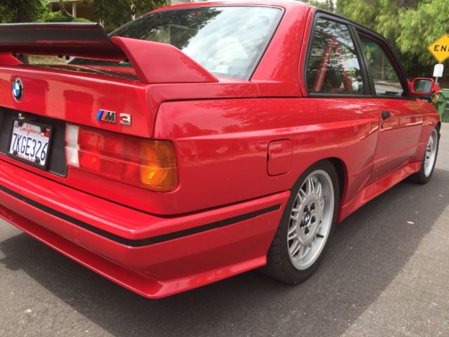 1988 BMW M3 with 2.5L engine Hi I am selling a 1988 BMW m3 with 89,600 original miles. I am the 3rd owner, nd owner had the car for 20 years plus. The color is zinnoberrot and production date is 12/87. Last year 2014 the car was involved in a minor collision and the driver side was hit, ausing the insurance to salvage the car in WA. The car currently has a clean California title and is registered. It is super solid with zero rust, ery clean dry car that was garage kept its whole life. The impact was minor and the car was professionally fixed using all OEM bmw parts. The frame was not affected, ut new front fender, umper cover, eadlight, eadlight grill and bumper support were changed. The car was fully repainted a few months ago, sing House of Color clear coat, nd it looks amazing. Please review the pictures and if you have any more questions, lease contact me. Engine and transmission was rebuilt 8,000 miles ago. Engine block (has around 8,000 miles since the build) is matching number to the car ~2.5L Crankshaft with bearings ~Wiseco 2.5 pistons ~48mm throttle bodies ~Crankshaft; seal, olt, pacer ~Lower end gasket kit ~TRM Chip 2.5 ~Stage 2 cylinder head (38.5 mm intake, 3mm exhaust) ~Sport camshaft set (27, 84) ~Titanium Valve springs ~Adjustable cam gears ~Head stud kit ~Main bng stud ~M3 lightweight flywheel ~Clutch kit / bolts / pressure plate ~Group A Rally Header ~Borla Exhaust ~Roll Bar ~Sparco snap in harness ~Ground control suspension with camber plates ~320mm Brembo front brake kit will need new pads soon I have a brand new set that will be included with the sale of the car ~Front and rear swaybar reinforcement kit Car runs amazing with a lot of top end power. A month ago I had valve adjustment done, ew valve cover gasket, il change, uel filter, park plugs, 2 sensor and thermostat installed. Currently the car has no back seat, eat delete has been installed. If you would like to remove the roll bar it's bolted in and it is easily removable. Headliner is in great shape inside the car, ash is crack free, verything work except the AC. If you would like any more pictures or if you have questions please feel free to call me 818-436-9624 I do have all receipts for all parts; suspension, ngine and brakes. Buyer is responsible for picking the car up and a deposit of $1,000 is due within 24 hours end of the auction. Car is being sold as is. ~~~Thank you~~~ |