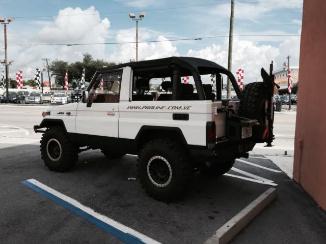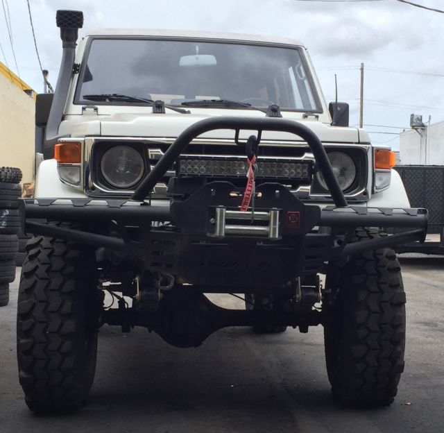 1987 Toyota Land Cruiser BJ73 Turbo Diesel. Rust free, eft Hand Drive Spanish import. Strong engine Toyota 3B diesel engine upgraded to Turbo this year with a new Garret Turbo and new exhaust manifold. H55F 5 speed manual transmission shifts smoothly and precisely. 332634 KM. No major mechanical issues. A few minor dents, icks and scratches around truck. Absolutely rust free. This Land Cruiser was as our shop promotional 4x4 and have very little used since we bought it. Lots of upgrades on this BJ73 includes:ARB Air lockers on front and rear Toyota 9.5 axlesARB Differential breathersARB High Output on board air compressorOld Man Emu Shocks and Springs.Spring over axle conversion with rear traction barHigh steering conversion with Old Man Emu steering stabilizerSuper Swamper Q78-16LT TSL TiresProcomp La Paz 16 inch wheelsProline 4wd Equipment Front Rally BumperProline 4wd Equipment rear R1 BumperProline 4wd Equipment Jerry Can Holder with Diese Can includedProline 4wd Equipment Hi-Lift, x and Shovel Spare Tire Mount with Hi-lift, hovel and Axe includedProline 4wd Equipment RockslidersProline 4wd Equipment Custom Roll CageSmittybilt XRC 9.5K winchXLS 20 inch LED light BarARB Safari SnorkelOriginal removable Fiberglass TopFJ70-75 OEM chrome grille with OEM corner lightsKenwood CD MP3 StereoWaterproof Boat SpeakersToyota Land Cruiser Seat coversJefferson State Machining Turbo Kit with Garret GT Series turbo and new exhaust manifoldNew ExhaustAuto Meter Pyrometer and boost gauges All this upgrades have a year or less on the Land Cruiser VIN Number for the BJ73 isJT1V0BJ7309003105 Vehicle was legally imported and is located in Miami, L. Comes with Florida registration. |