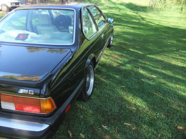 RARE E24 M6 BIG COUPE .'' BLACK WITH LOTUS INTERIOR . RUNS GREAT .NO RUS, NO LEAKS NO EXCUSES. THE SLS SYSTEM HAS BEEN CONVERTED TO H&R SPORT SPRINGS AND BILSTEIN SHOCKS . THIS M6 IS FAST AND FUN TO DRIVE .COSMETICALLY .IT IS A ''DRIVERS CAR'' THE CAR WAS RESPRAYED IN THE ORIGINAL SWARTZ .THERE ARE SOME STONE CHIPS ON THE FRONT DAM AND SOME BLEMISHES ,BUT PRESENTABLE OVERALL .THE INTERIOR IS IN FAIR SHAPE . THE FRONT SEATS ARE SHOWING SOME WEAR AND THE DRIVER SEAT SIDE BOLSTER HAS BEEN PATCH BUT SHOULD BE REPLACED .THE 8 WAY POWER SPORT SEATS ARE FULLY FUNCTIONAL AS WELL AS POWER WINDOWS &SUN ROOF THE HAND STITCHED LEATHER DASH A 1987 ONLY FEATURE HAS STARTED TO PULL AWAY ALONG THE WINDSHIELD ALTHOUGH REPAIRABLE .A LESS EXPENSIVE FIX WOULD BE TO REPLACE THE DASH WITH THE BLACK PLASTIC DASH USED ON THE ;88;AND 89 M6 AS WELL AS ALL OTHER E24 SIX SERIE, OR A DASHBOARD COVER AVAILABLE FROM ''COVERLAY '' FOR $140. THE A/C NEEDS SOME ATTENTION THE SYSTEM HAS BEEN CONVERTED TO R 134 . AFTER CHARGIN, THE COMPRESSOR ENGAGES AND BLOWS COLD .....FOR A MINUTE OR TWO . HAGERTY LIST THE M6 AS AN 'APPRECIATING CLASSIC''WITH PRICES CLIMBING AT AN AVERAGE OF 5% PER YEAR. THERE SEPTEMBER 2015 VALUATION INDEX SHOWS A RANGE OF $15,000 ON THE LOW END TO A HIGH OF $48,900 FOR A CLASS 1 CONCOURSE CAR . THIS IS NOT A CONCOURSE CAR .AND THE RESERVE IS SET TO REFLECT A REALISTIC VALUE OF THIS CLASSIC I AM SELLING THIS M6 FOR A FRIEND . ANY QUESTIONS CALL ME AT 412 884 4013 ASK FOR GEORGE |