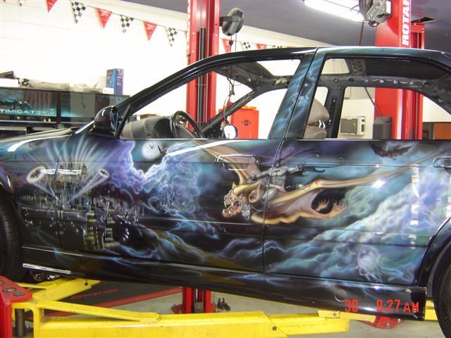 For sale a unique BMW, the chassis started out as a 1992 325I converted to Euro spec M3, it was completely stripped and repainted black inside and out, the graphics are air brushed by an artist who works for Hollywood movies. Vehicle spec: A Euro M3 spec engine B30 S50 285HP 5 speed manual transmission. Aluminum flywheel with performance clutch Bilstein PSS9 coil over suspension kit 18 inch BBS custom painted wheels Michelin Pilot Sport PS2 tires Brembo big brake kit front and back Kenwood/JL audio sound system all the rubber moldings and seals have been replaced UUC exhaust Sparco front seats Custom interrior All the mechanicals are in excellent condition, everything works on the car. if you need any more information or have any questions please contact me. Thank you :-)