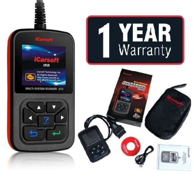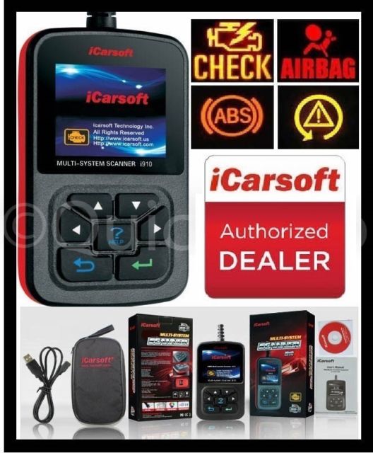 iCarsoft i910 Multi-System Scanner Tool for use with BMW/MINI The i910 is a multifunction diagnostic scanner and tester which has been designed specifically for use with BMW/MINI vehicles. It will enable you to read and clear diagnostic faults from main systems within your vehicle such as SRS airbags, ABS Antilock Brakes, DSC, engine & transmission modules, A/C, Instrument Cluster and more. It will also allow you to read live data in real time format. We have tested the scanner on many vehicles with excellent results. Compared to higher priced kits on the market that do exactly the same as this kit, we feel it offers excellent value for its cost. The i910 is an easy to use, stand alone unit that will have you scanning your vehicle within minutes. Simply, plug it into the OBD II port and the device will boot up with step-by-step instructions. This scanner has a large, easy to read 2.8 inch color display accompanied by a user friendly interface that requires no additional software. This is an aftermarket product made by iCarsoft Technology Inc. Functions Include: