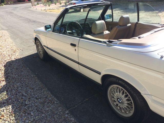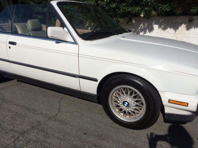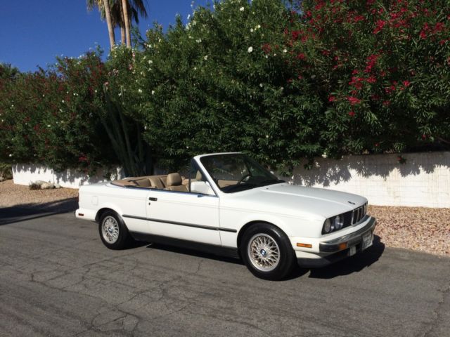 Offered now for your consideration is an impeccable 1989 BMW 325i convertible in classic Alpine White, an ideal accompaniment to any sunbathed, palm tree and eighty-degree lifestyle. With a clean title, no accidents, and possessing all original paint, an original convertible top, owners manuals and 146, 417 original miles, the vehicle was purchased some 24 months ago from Pristine Auto in California's Central Coast, we have since had the pleasure of wandering up and down the Pacific Coast Highway, to San Francisco, and of course, Palm Springs. With no mechanical issues whatsoever, this was our everyday transport here in Los Angeles, since purchasing the vehicle we have invested significantly in maintenance; replacing the rack and pinion assembly, attended several minor cosmetic details, replacing the rear shocks, power steering suction hoses and pumps, replacing belts, re-built the entire a/c system and replaced the thermostat and transmission. Recent repairs include radiator repair, battery and alternator replacement. We possess a full-service history for all work undertaken, by Hi-Tech Automotive, Los Angeles. There are three minor cracks within the dashboard, photographs of which can also be provided. A cherished vehicle, one we have enjoyed immensely, wandering about Malibu and throughout Southern California, convertible top firmly lowered of course, we are now selling such as we are re-locating overseas, and would like to see her possessed by another owner as adoring as ourselves. Please enquire with any further questions you may have; a full Carfax report is available as are additional photographs. In-person delivery from California is also possible.