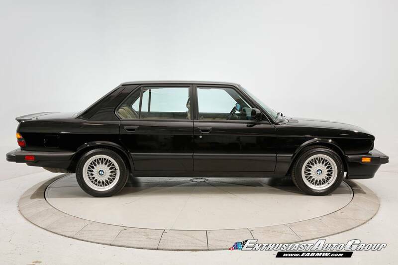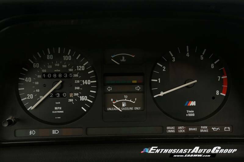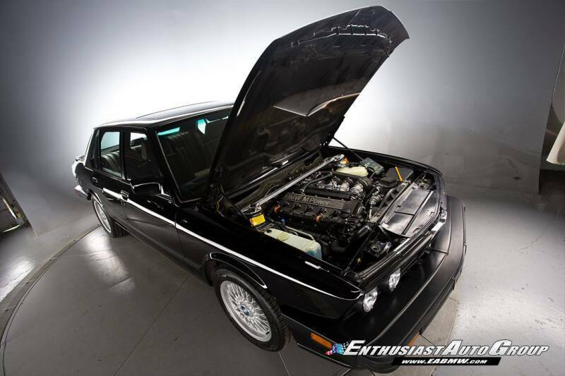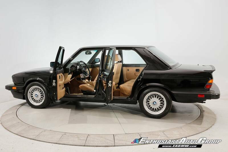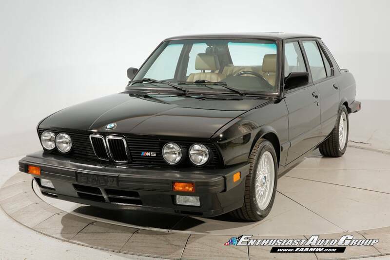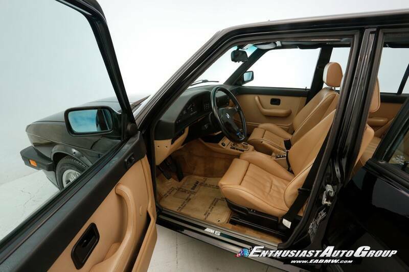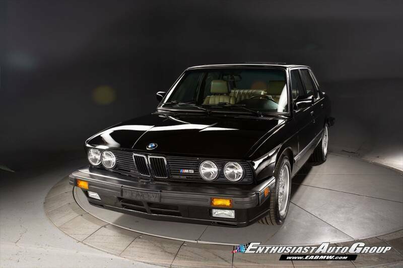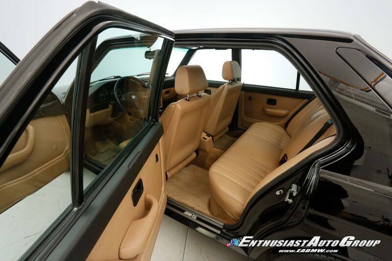 *New Arrival* Schwarz Black over Natural Tan Leather, Incredibly Original, Survivor E28 M5! All Original Body Panels with VIN Tags Intact. This very clean 1st generation E28 M5 has been garage-kept in California since new until 2005 and has remained 100% rust free! The condition of this vehicle is impressive for the age and mileage! The exterior paint retains a beautiful finish with few minor flaws or imperfections; validating originality. The interior is well-preserved with supple leather, clean carpets and no significant wear areas. The dash panel is in great shape with no abnormalities, cracks or signs of age. This 1980’s “Wolf in Sheep’s Clothing†has been only enjoyed during nice weather. Never seen winter conditions, therefore, the body and undercarriage are in excellent condition and still have the original cosmoline intact (photos on file). This car will impress vintage BMW enthusiasts that appreciate and respect originality! Tasteful period-correct enhancements include: Self-leveling Suspension Delete, Dinan Adjustable Sway Bars, Dinan Engine Performance Chip, Supersprint Muffler, Front Strut Tower Brace, Short Shift Kit and CD Player (Stock head unit available). Enthusiast Auto has completed our Comprehensive Pre-Purchase Inspection and Work Order preparing this car to join the new owners collection! EAGs Comprehensive Rejuvenation Program Highlights include a Complete 10-year Service with all new fluids and filters, valve adjustment, idle control valve, engine drive belts, distributor and cam seals, alternator bushings, power steering lines, transmission mounts, transmission selector and output seals, front caliper rebuild and front thrust arm bushings. EAG has invested over $14,000 to ensure this M5 carries EAGs reputation for quality and reliability. Compression test results, detailed undercarriage photos, condition details and historical information is all on file and available to interested buyers. This car is will make a fantastic addition to any collection or could be enjoyed as a low-annual mileage driver! Clean 2-Owner Vehicle History Report with No Accidents and No Issues. Responsibly Adult Owned, Garage-Kept, Non-Smoker. Please Call or email to obtain a Pre-Purchase Inspection Report, Build Sheet, Condition Related Details, Vehicle History and 200+ Detailed Photos; 513-554-1BMW (1269)